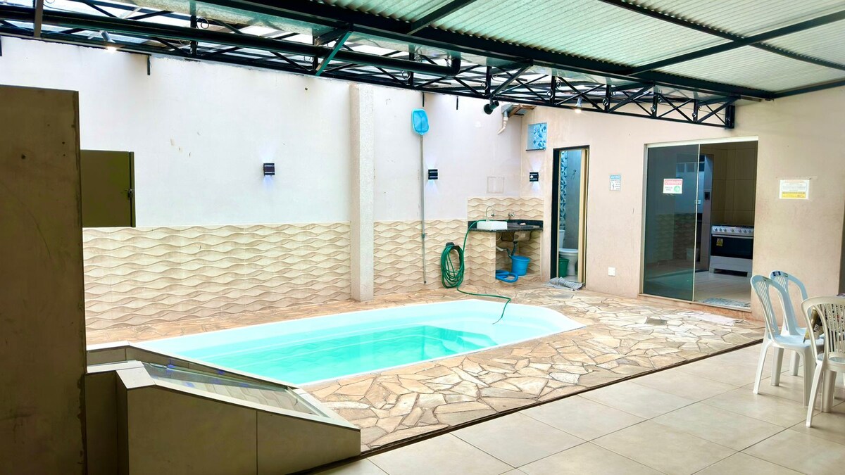 Solicite orçamento a partir de 30 dias Atualizações 2026; 1 Quarto de casal com ventilador, tv de 50 polegadas e soundbar jbl 1 quarto com ventilador, uma cama de casal e 2 treliches Piscina aquecida com telhado retrátil, jogos de mesa com 12 cadeiras, som bluetooth, ar condicionado externo de 18 mil btus e ventilador 2 banheiros Garagem para 2 carros, cozinha com gás, utensílios, liquidificador, cafeteira, microondas, ferro de passar e churrasqueira, WIFI Roupa de cama e banho