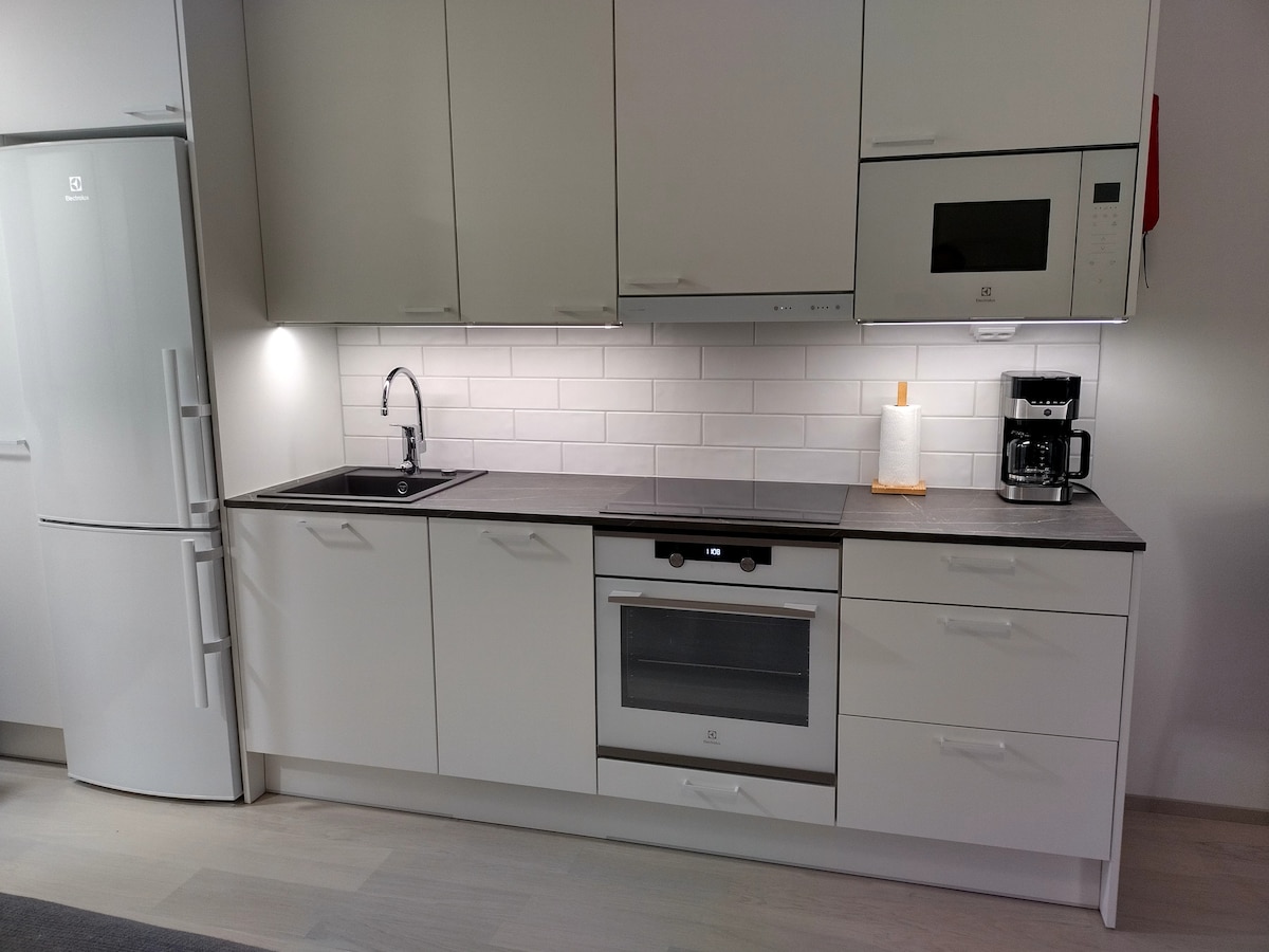 ¡Excelente ubicación en el corazón de Tampere! A solo 50 metros de la entrada principal del nuevo Nokia Arena, a 100 metros de la estación de tren y autobuses. Todos los servicios y atracciones, todos los restaurantes, cafeterías, discotecas, centros comerciales y boutiques a solo unos pasos. El apartamento es nuevo, la casa ha sido construida en 2022. En el apartamento hay una cama tamaño king, un sofá cama para dos personas, un baño espacioso y una zona de cocina agradable y compacta. Mesa para comer y también espacio de trabajo apto para portátiles.