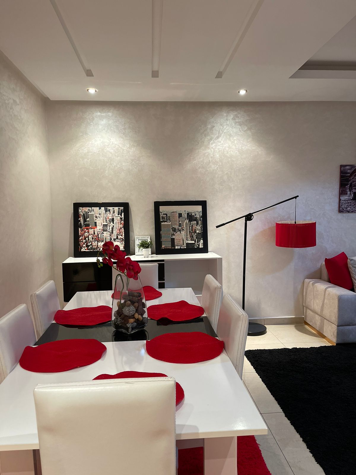 Excellent, bright apartment in Agadir, host city of the 2025 Africa Cup of Nations, just a 2-minute walk from the bustling Souk Elhad bazaar, offering all the comforts needed for a pleasant stay. It includes: 2 bedrooms: one with a double bed and the other with two twin beds, a living room with IPTV and Wi-Fi, a dining room, a fully equipped kitchen, a bathroom with toilet, and a spacious terrace perfect for relaxing. The location is close to all amenities and the city center. 2km from the beach