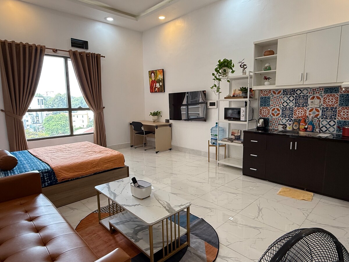 Welcome to Amable Home! ● 28m2 studio with private bathroom and well-equipped kitchen. ● 7 mins to the Airport, 10 mins to city center. Building is right next to 24/7 mini mart. ● Nice workspace with ethernet plug, fast Wi-Fi 140Mbps. ● Free self-service laundry area-cleaning products provided. ● Late check-in at midnight - Store luggage after check out. ● Free Vietnamese coffee every morning at reception counter to wake up your day.