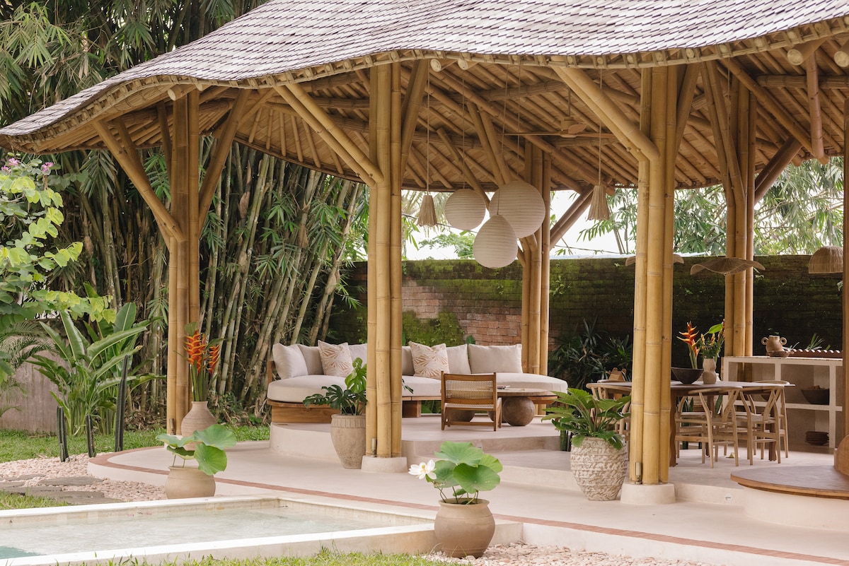 Zona libre de inundaciones. Bienvenido a Villa Dwipa, ☀️ un lugar donde puedes disfrutar de la belleza y el lujo de una villa de bambú completamente privada y todas sus instalaciones rodeadas de naturaleza tranquila. 🍃 Desde un chapuzón en la piscina privada, ver una película en la pantalla de cine desplegable y tener una fiesta sin vecinos en la sala de estar hasta pasar un tiempo de calidad tranquilo, relajarse cómodamente en el balcón y todo lo demás, ya sean amigos o amantes, le garantizamos que lo pasará bien. 😊