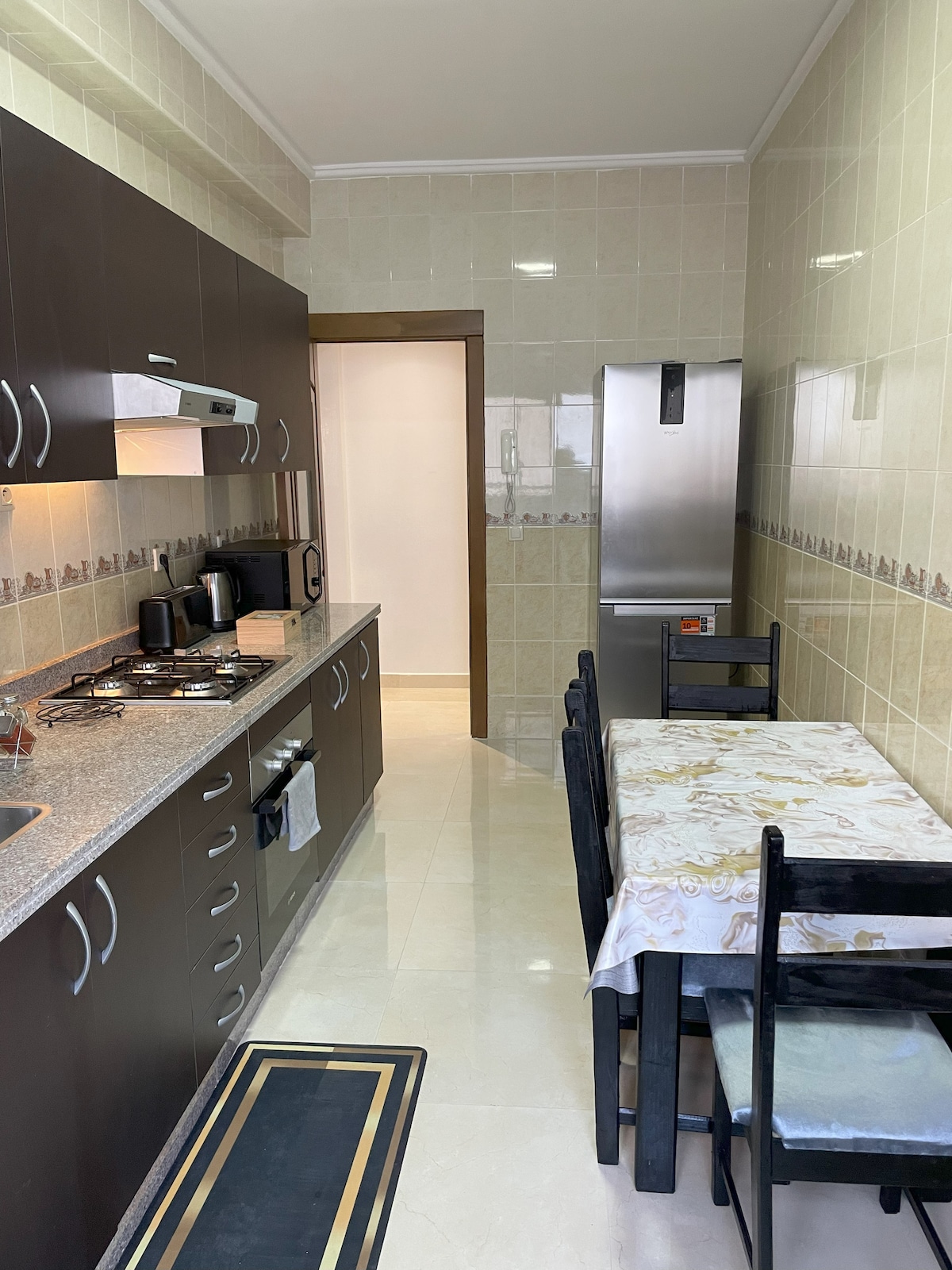 En el corazón de Tánger y su cornisa, mi apartamento moderno y cómodo le permitirá relajarse en cualquier momento del año, situado en el octavo piso con una de las mejores vistas de Tánger. El apartamento es seguro y está totalmente equipado (TV, aire acondicionado central en la sala de estar, nevera, lavadora…) la conexión WIFI también está disponible en el apartamento. Tiene 2 baños 2 dormitorios, uno de ellos doble con una cama grande y otro con 1 cama normal, la sala de estar de estilo marroquí que puede convertirse por la noche también en un medio para dormir, al abrir la ventana también se oye el sonido del mar. La residencia está vigilada en todo momento con 2 ascensores, el conserje está a su disposición cuando sea necesario. El barrio es conocido por ser uno de los mejores de Tánger con sus muchas tiendas cercanas. Para la estancia el apartamento es completamente tuyo, todo se proporcionará para la máxima comodidad. Horario de llegada y salida flexible, aparcamiento gratuito la limpieza la lleva a cabo una empleada de limpieza antes y después de su estancia. Atentamente Jamal.