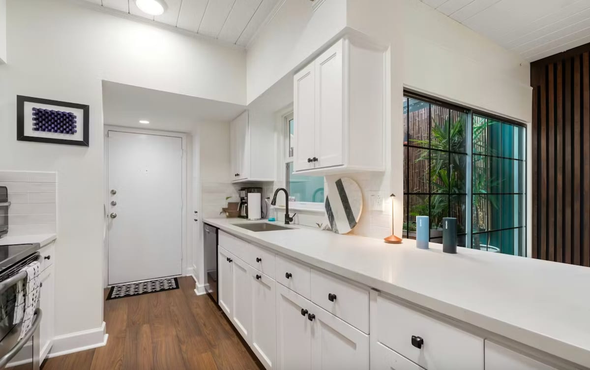 No olvidarás tu estancia en este alojamiento contemporáneo con cocina gourmet, dormitorio con baño privado y mucha luz natural. Camina hacia el patio trasero privado desde el dormitorio o la cocina para disfrutar de una comida en el comedor al aire libre o bebidas alrededor de la hoguera. Después, dirígete al interior de la espaciosa sala de estar, similar a la de un hotel, para ver Netflix en el televisor de 75 pulgadas. La lavandería incluye una nueva lavadora de alta capacidad, secadora y lavabo. Aparcamiento cubierto de fácil acceso.