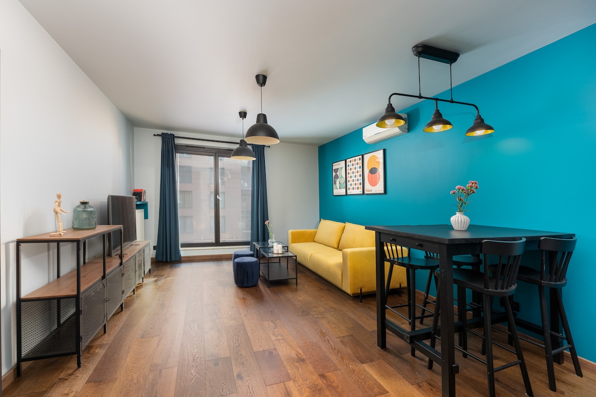 Modern, well designed, brand new apartment in a traditional, authentic building. The apartment is located in an elegant street, in the very downtown of Budapest. It is still quiet although it is in the heart of the city. It is close to the tourist attractions, so you can easily walk anywhere in the city, but public transportation is only a 2-minute walk away. The area is full of bars, cafés, restaurants, 0-24 grocery around the corner, shopping center, ruin pubs, Széchenyi SPA very close.