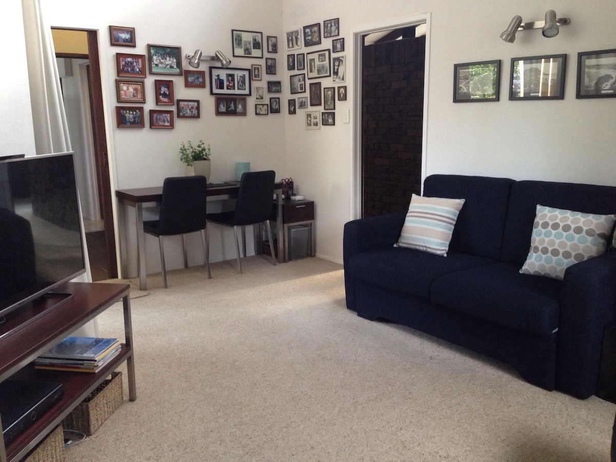 Nuevo estudio independiente con entrada privada. Cerca de las principales rutas de transporte a Tauranga y la playa de Mount Maunganui. Cocina americana, horno, ollas, tazas, sartenes, platos. Nevera pequeña, horno, jarra, tostadora, artículos básicos para el desayuno, leche, muesli, té y café. Baño con inodoro, ducha y secador de pelo. TV, Netflix, wifi disponible. El estudio tiene puertas que dan al exterior. Bomba de calor. Se accede al estudio a través de un teclado numérico/puerta cerrada en la valla delantera junto al buzón. Una plaza de aparcamiento en la propiedad.