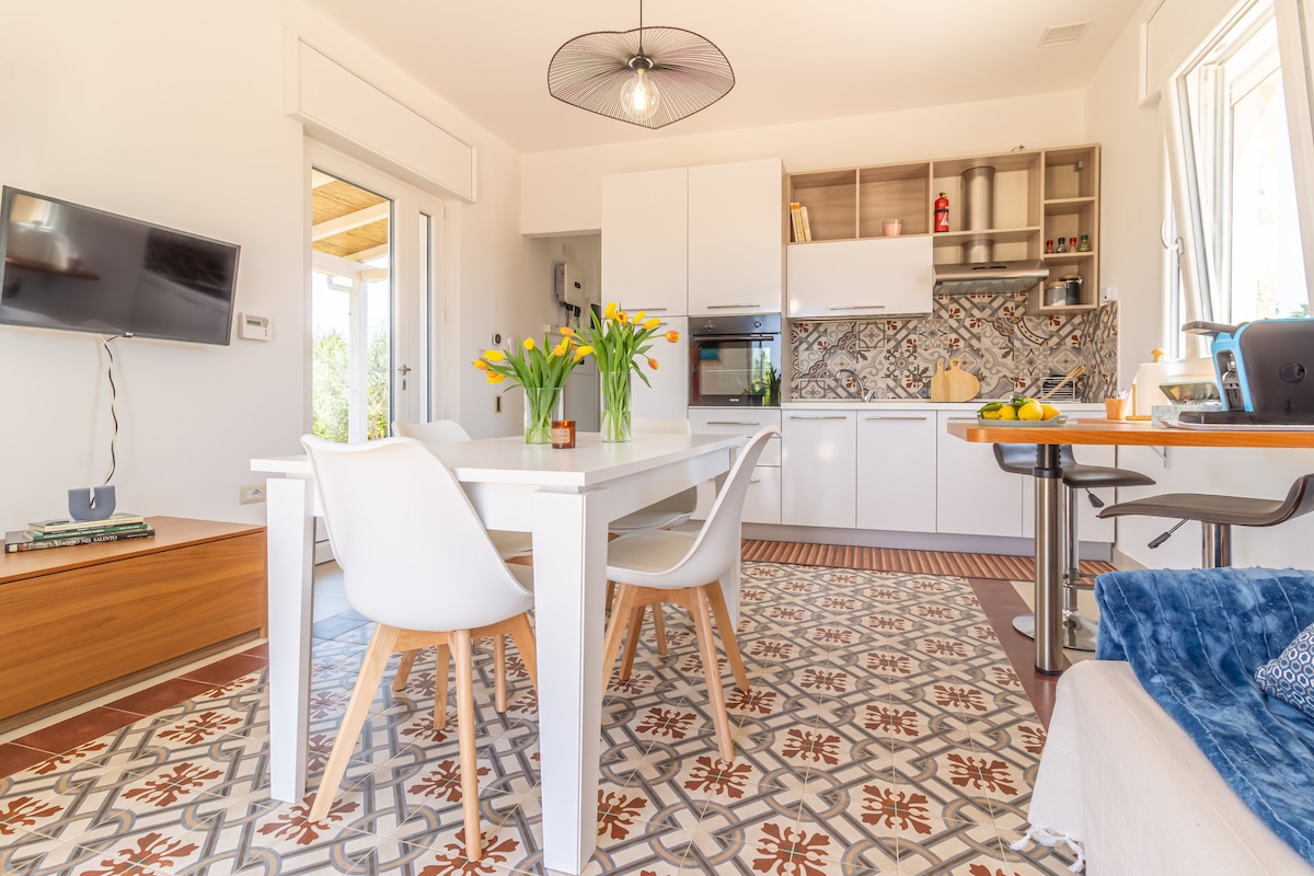 Apartamento vintage en Salento, recientemente renovado con gran gusto y todas las comodidades. ¡Espacio al aire libre utilizable y descenso inestimable al mar privado que hace que el baño en calas y baños naturales tallados en las rocas sean exclusivos y solitarios, incluso en los días más calurosos del verano! El apartamento forma parte de un complejo con vistas al mar que tiene un gran jardín de condominios, un espacio reservado donde se puede comer bajo las estrellas y con vistas al mar y usar la barbacoa.