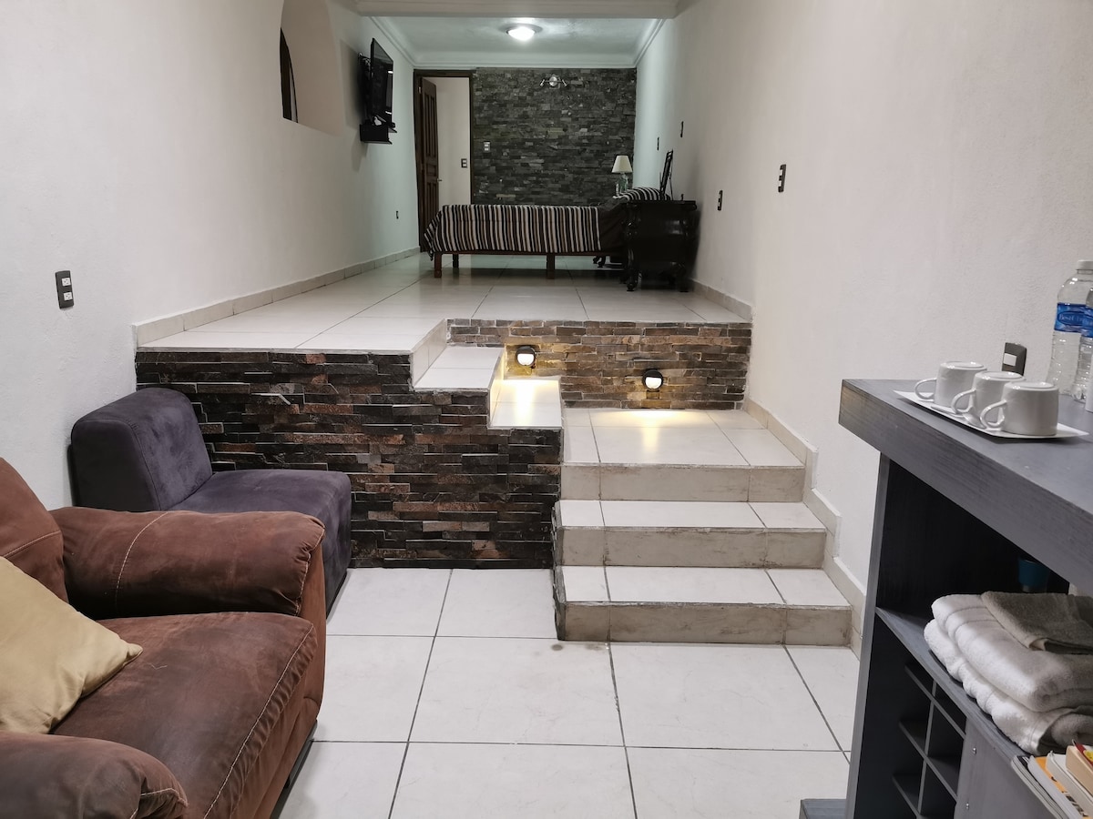 Departamento tipo loft con amplia e iluminada habitación, baño privado y amplio closet. Cocineta privada que incluye: estufa, horno, refrigerador, congelador, jarra eléctrica, licuadora, especias y artículos básicos de cocina, té y café. Entrada independiente. Bellas vistas de la ciudad y balcón para descansar y jardín.