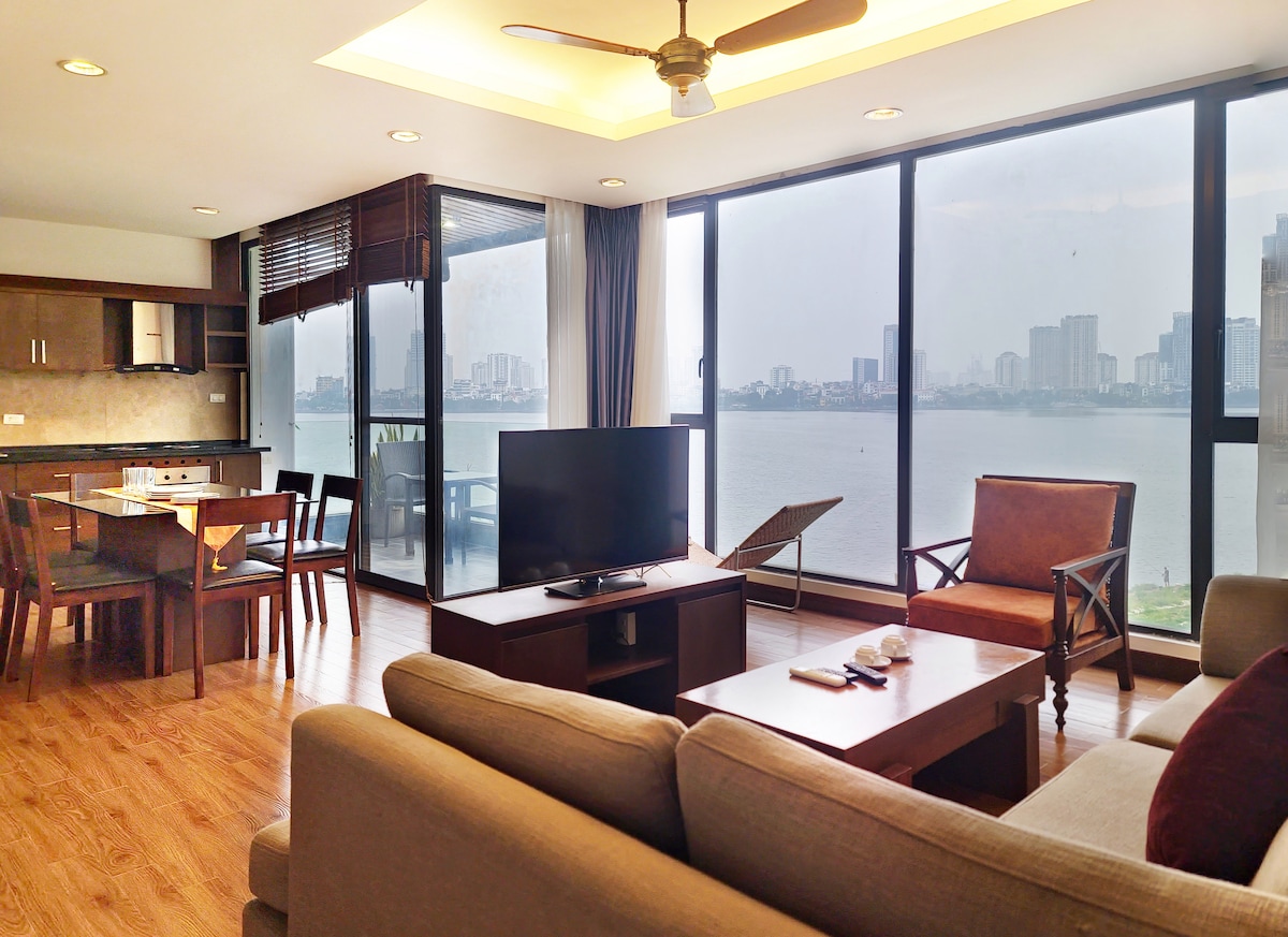 Welcome! Ideal living space, very quiet, direct view of West Lake, located on Tu Hoa street. Area #50m2, 1-bedroom apartment is fully furnished by Na with kitchen appliances, large Smart TV, soft sofa, washer/dryer, 2-way high-capacity ceiling air conditioner, bedroom has 01 desk, dining table, long and wide balcony for sunbathing & enjoying the view of the Lake. Location quickly connects to the Old Quarter, President's Mausoleum and many tourist attractions.