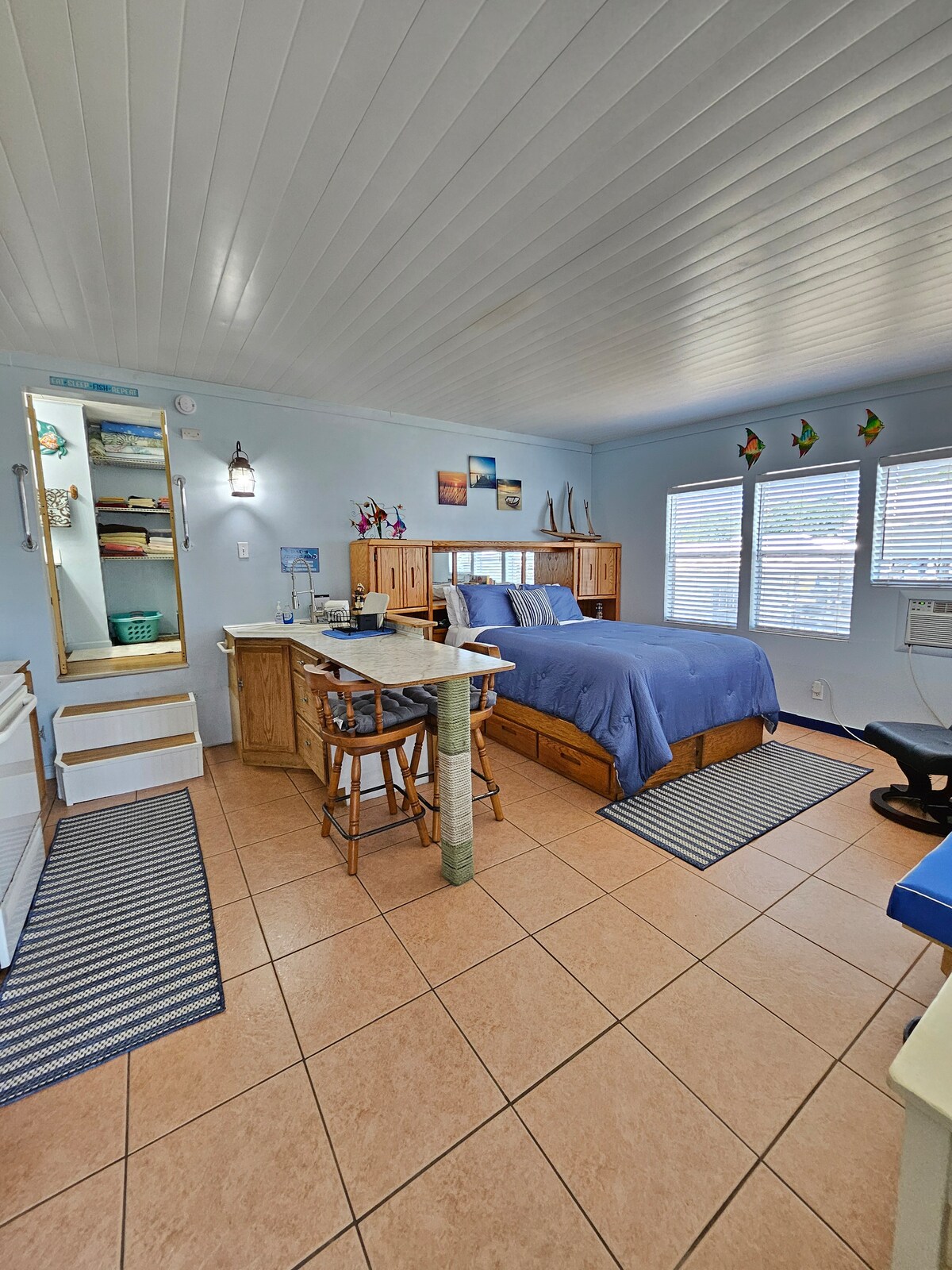 Bienvenido a nuestra casa del lago de 2 dormitorios y 1 baño completo, bellamente renovada, con un tema festivo de pesca. Ubicada en un barrio tranquilo, nuestra casa ofrece una escapada serena a la vez que está convenientemente cerca para acceder tanto al lago Okeechobee para pescar y navegar como al Centro Agro-Cívico para eventos de rodeo. Ya sea que te estés relajando en el patio o pescando desde la cubierta de abajo, este es el lugar perfecto para tu escapada. Se admiten mascotas por un cargo adicional de limpieza.