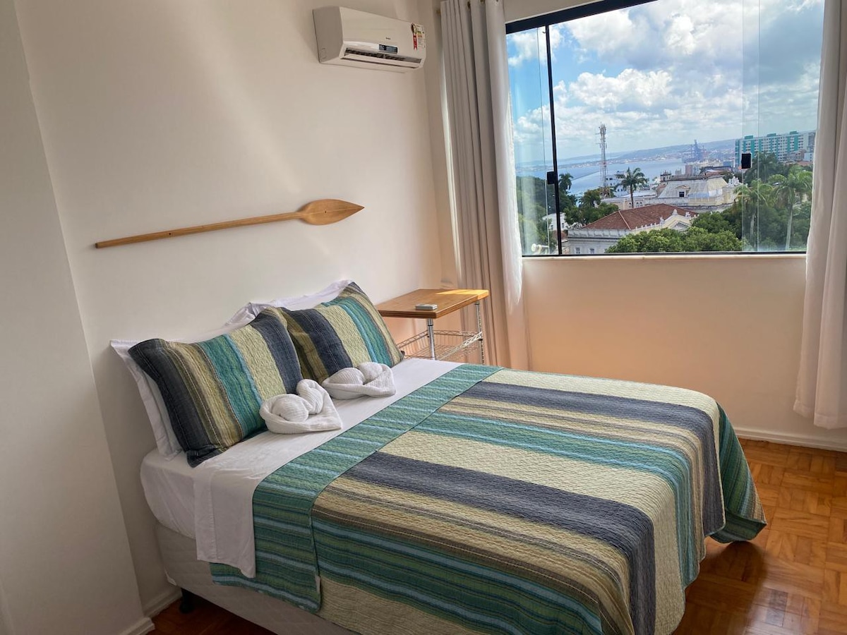 Vista y comodidad para una estancia memorable. Contemple la puesta de sol y la salida de la luna en una azotea privada, sin salir de la cama, acostado en la hamaca, en la mesa del comedor o haciendo una barbacoa en el balcón. Vista al mar total a Bahía de Todos los Santos. Internet de fibra y cocina completa, totalmente climatizado. A pocos metros de Bahia Marina, Praia da Gamboa y MAM. A minutos del Pelourinho o Farol da Barra. ¡Conserjería 24 horas, con garaje y piscina!