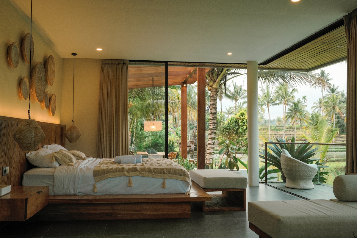 *RECIÉN RENOVADO EN JUNIO DE 2025 - Ahora con aire acondicionado y mucho más* Villa Kalisha se encuentra en una ubicación maravillosamente aislada en un espectacular desfiladero junto a pintorescos campos de arroz, pero aún cerca de Ubud. Todas las habitaciones tienen cristal de suelo a techo y ofrecen vistas panorámicas del increíble paisaje. Villa Kalisha es una villa con todos los servicios y comidas incluidos, por lo que solo tienes que sentarte, relajarte y disfrutar del aire fresco de la montaña, las vistas épicas y las deliciosas comidas balinesas de nuestro cocinero. Solo la escapada perfecta.