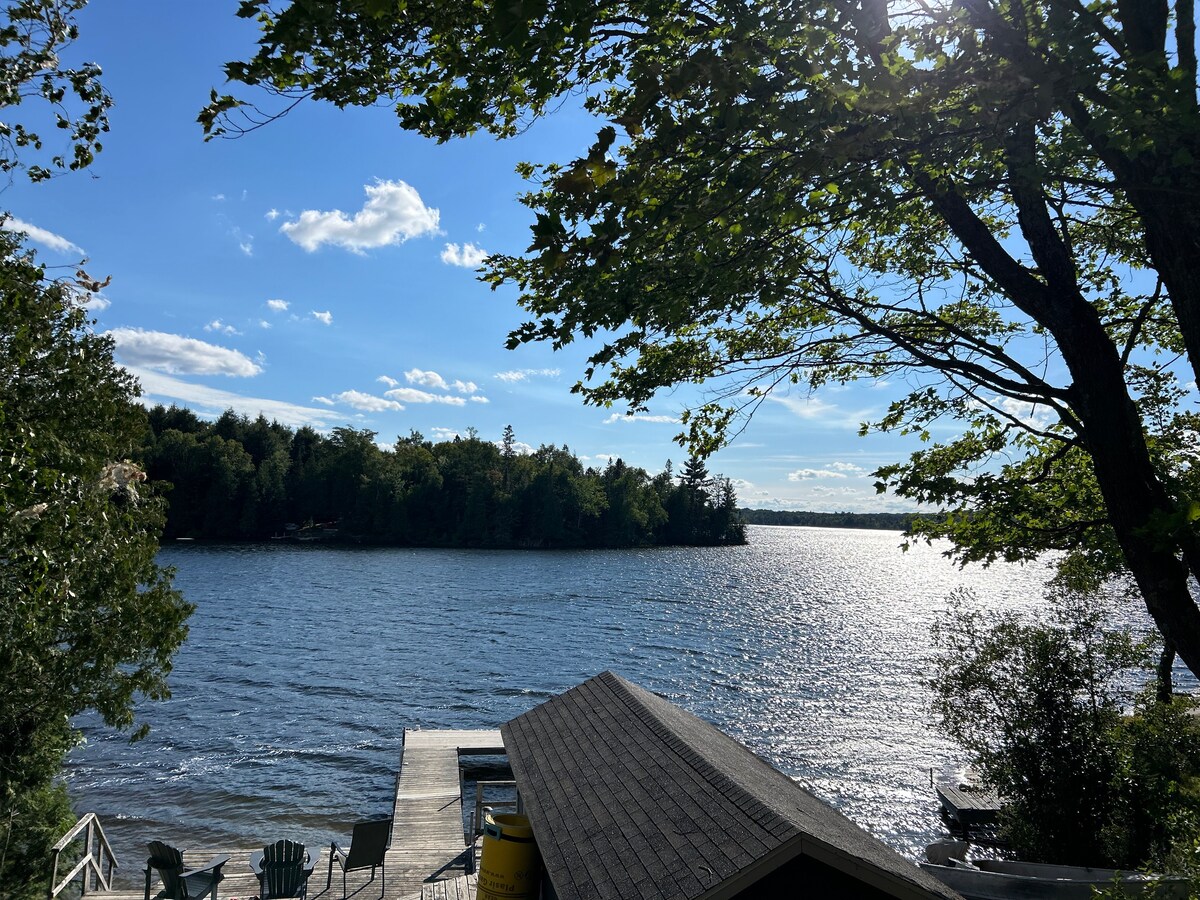 Relájate con toda la familia en este alojamiento tranquilo. A 35 minutos de North Bay, en una hermosa ubicación rodeada por el bosque Kenny, con muchas rutas de senderismo, pesca e impresionantes senderos para todoterreno/motos de nieve. El camino de la cabaña se mantiene durante todo el año y conecta directamente con el sendero «A». La cabaña ofrece una pequeña zona de playa y un gran muelle flotante para saltar al lago en una zona libre de malezas. ¡Hermosa zona para nadar o simplemente relajarse en el muelle! Incluye un bote de remos, un pequeño kayak, una canoa y tablas de paddle surf.