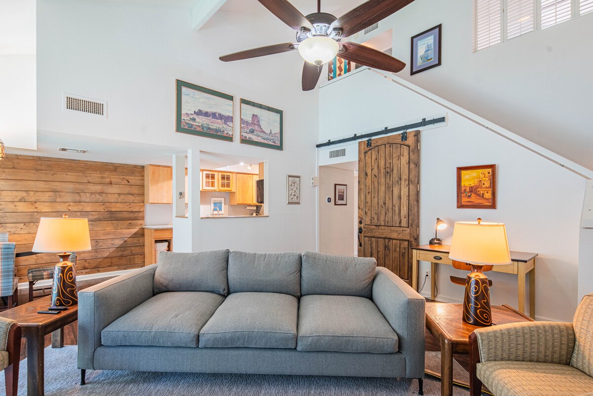 ¡Disfruta de una moderna casa en el desierto recientemente renovada en el sur de Scottsdale, que es elegante y está situada en el centro! Esta casa incluye un plano de planta dividido de dos dormitorios con colchones tamaño king de espuma viscoelástica, dos baños completos con duchas a ras de suelo, suelos rústicos de hormigón en todas partes, cocina completa y gran mesa de comedor, gimnasio grande de lujo, lavandería completa, escritorio/espacio de trabajo, acogedor patio trasero y patio, ¡y cada habitación tiene televisores inteligentes!