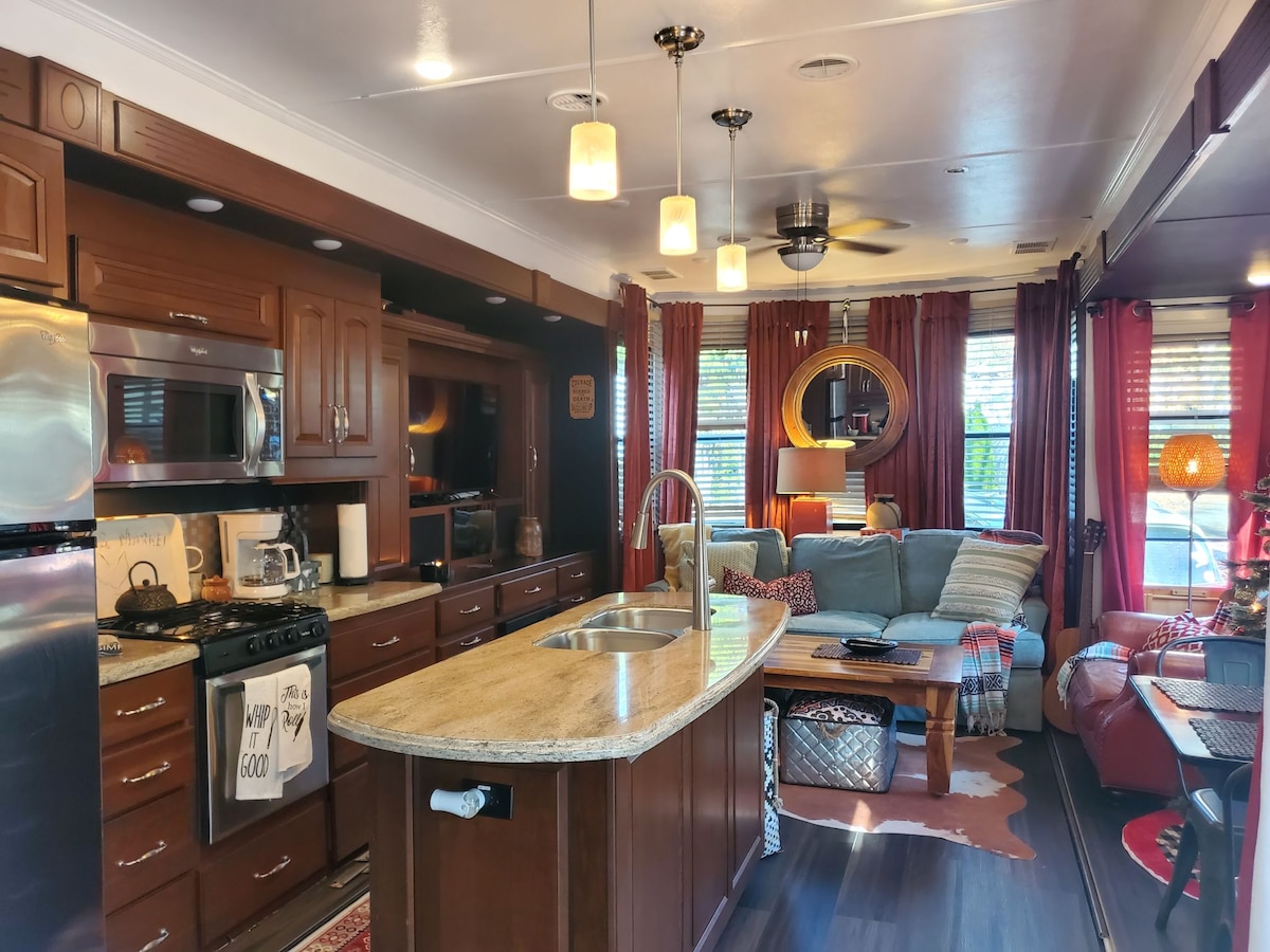 Autocaravana de 36 pies frente al arroyo con wifi en Smoky Mountain Haven