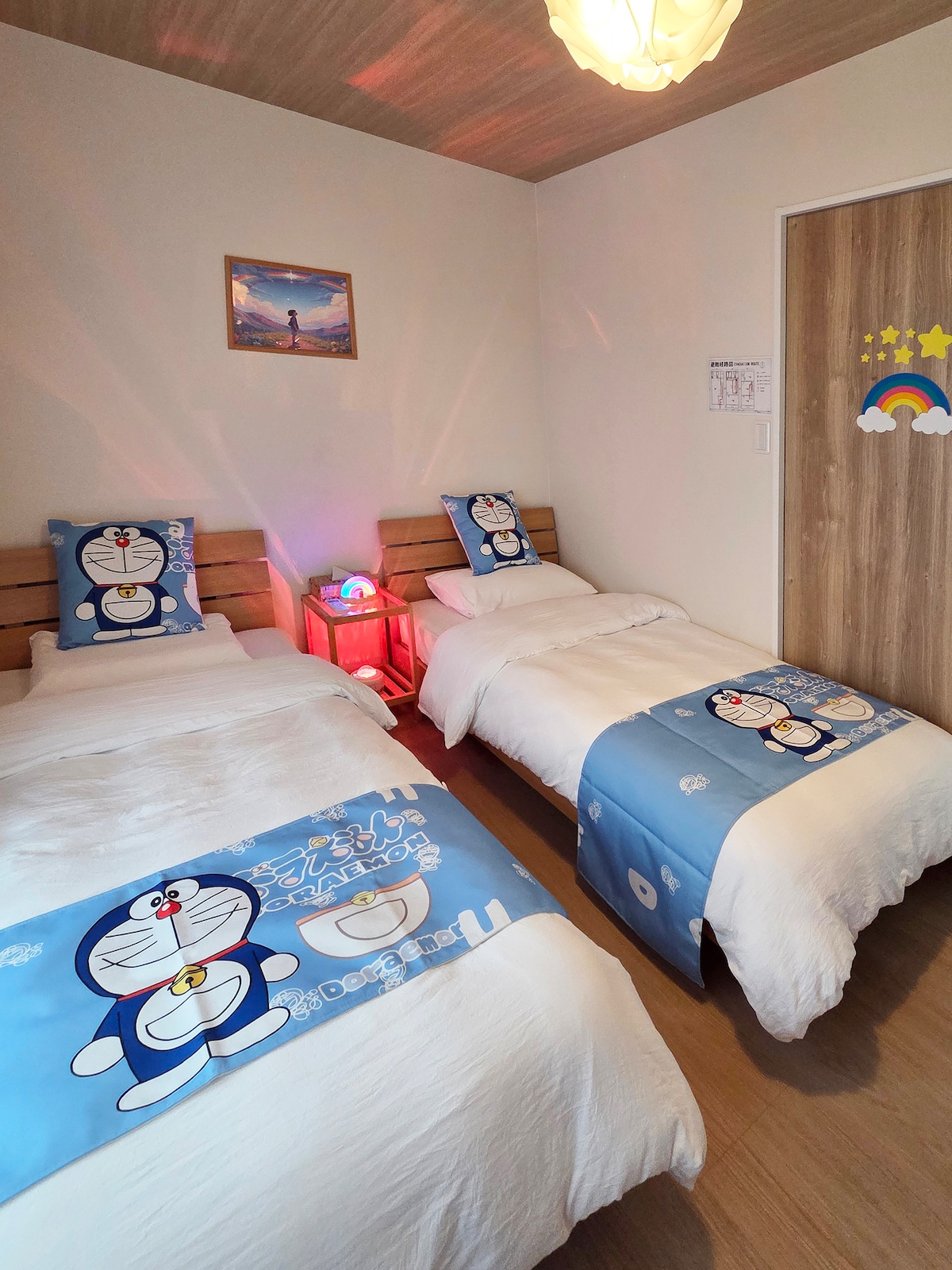 Welcome to Niji no Ya, a modern Japanese townhouse beside Osaka’s Tsutenkaku Tower. Steps from Dobutsuen-mae Ichibangai, a nostalgic Showa-era street with century-old shops and local eateries. Walk 2 min to subway, 5 min to Tsutenkaku, 6 min to Tennoji & Abeno Harukas. Direct trains to Namba, Umeda, Universal Studios & Kansai Airport. Bright 75㎡ home on 2F&3F, modern Japanese style, perfect for families & memorable stays.
