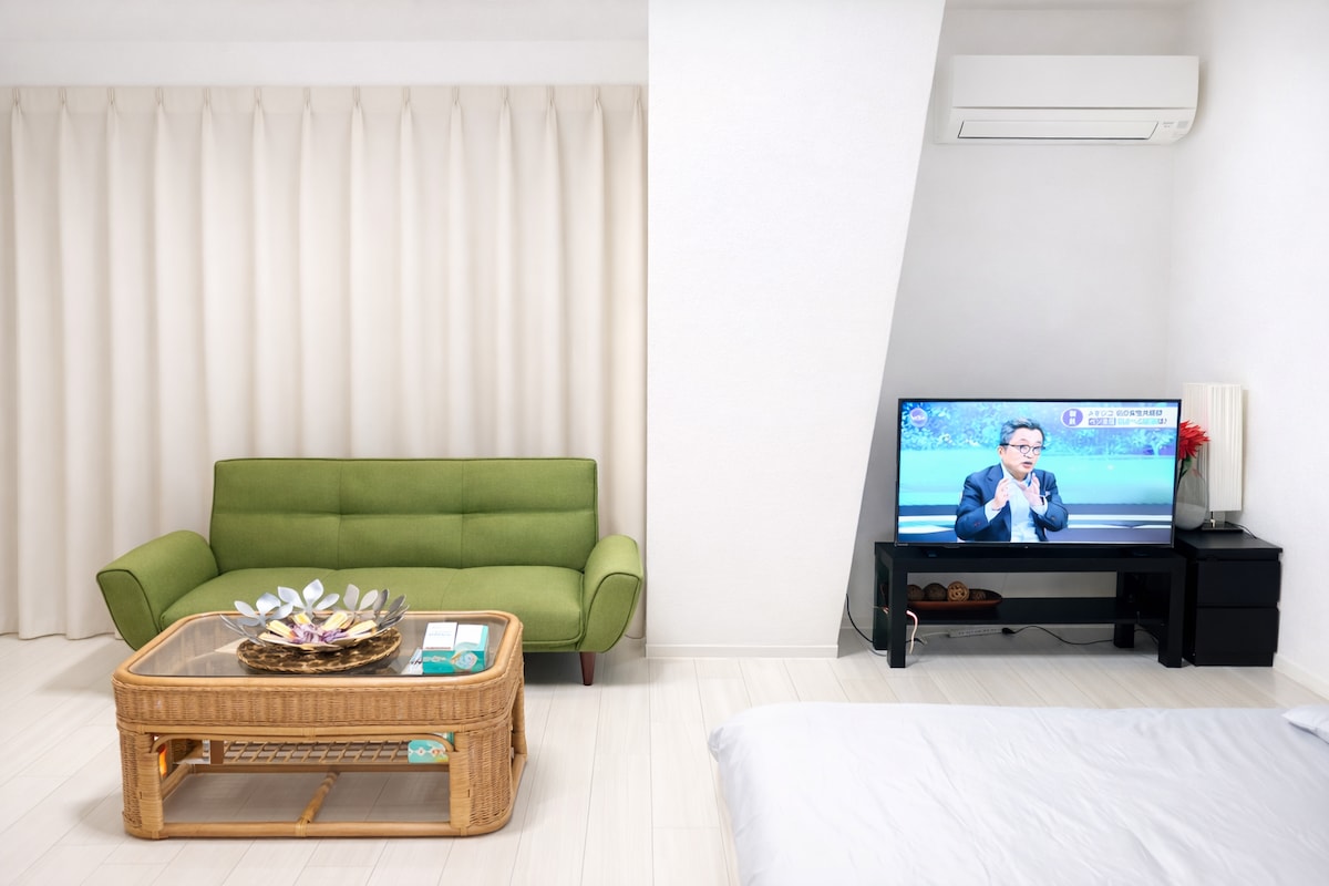 Una casa de huéspedes con la encimera de bar más genial. Todos los espacios están reservados. A 2 minutos a pie de la estación, junto a FamilyMart. Tómate una bebida en la cafetería con un sofá y una cama doble. Puedes disfrutar de películas, Netflix, youtube y música conectándolo a una PC con un proyector y un cable HDMI. Una gran televisión y cojines de cuentas para un comedor elegante con una cocina y una sala de estar relajante. El dormitorio está equipado con una cama doble. También hay un calentador de ventilador de gas, por lo que hace calor en invierno.