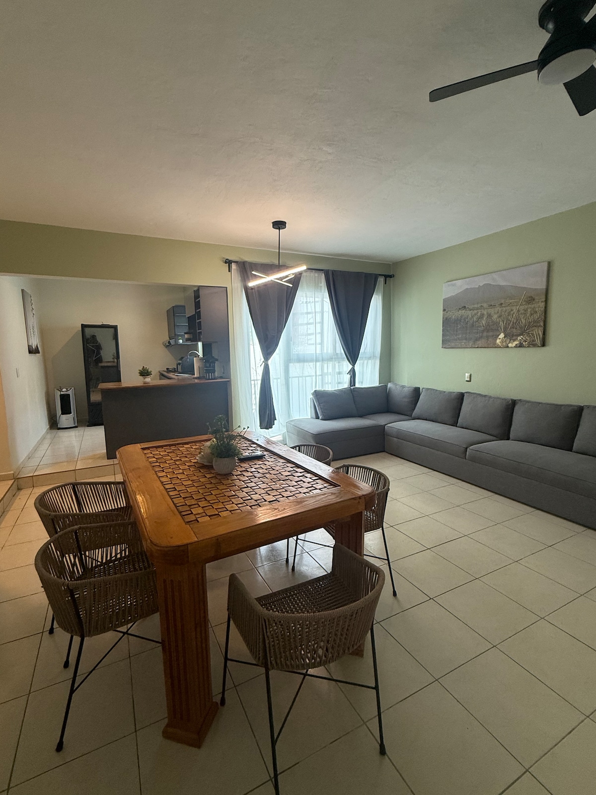 Vive la experiencia de hospedarte en un departamento en Tequila, Jalisco, ubicado en una zona céntrica pero lejos del ruido, para aquellos viajeros que desean disfrutar de lo que ofrece el Pueblo Mágico de Tequila y que también valoran el descaso tranquilo. Este alojamiento combina comodidad, descanso y funcionalidad, ideal para parejas, amigos o familias pequeñas que buscan un departamento económico, pero con todas sus amenidades. un espacio tranquilo, bien ubicado y confortable.
