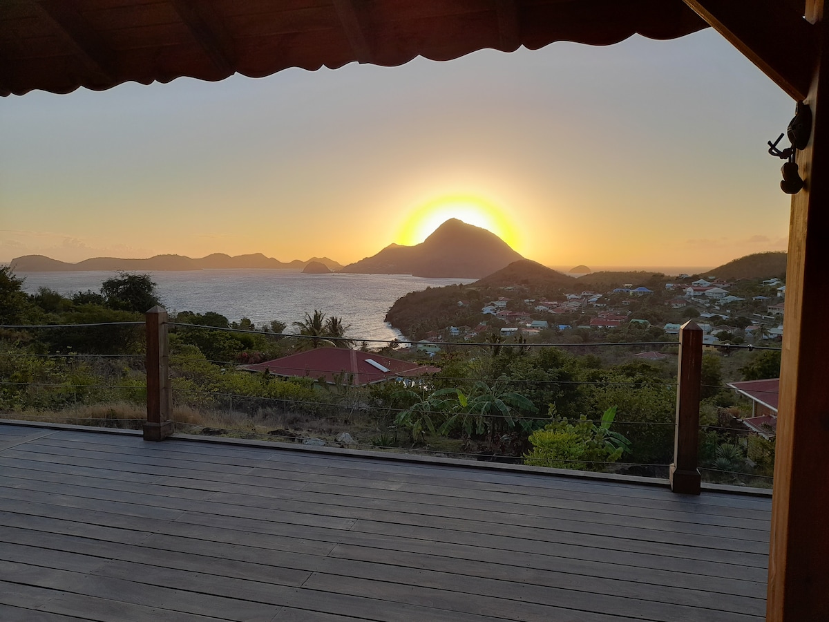 Disfrute del encantador entorno de este romántico alojamiento en plena naturaleza. Situada frente a la bahía de los Santos, considerada una de las más bellas del mundo. Esta cabaña criolla es ecológica, ya que es toda de madera y autónoma en agua y electricidad (agua de lluvia y electricidad solar). La ducha exterior a temperatura ambiente en un entorno vegetal le ofrecerá un cambio de aires garantizado. La cocina diseñada y amueblada con un espíritu criollo le traerá todo el equipamiento necesario para una estancia de ensueño.