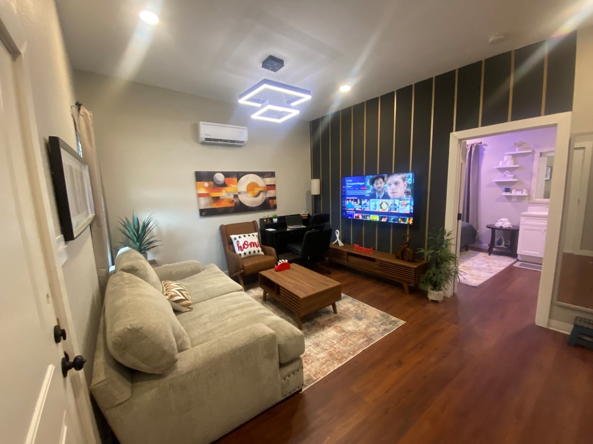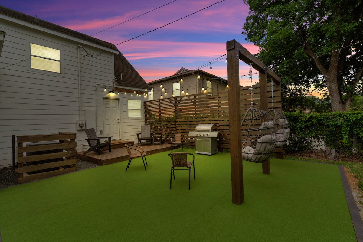 No cleaning fees! This luxurious, modern smart home features 2 bedrooms with 2 bathrooms, a 65 inch Samsung big screen TV, dolby atmos surround sound, ping pong table, foosball table, cornhole, bbq area, and an extra large garage! Near Downtown, Minute Maid, TDEC stadium, Zoo, Parks, and more! The front house is a separate listing. The garage, bbq and ping pong table are shared. If you'd like to book both homes as a 6 bedroom, reach out to me and I'll send you a link to the 6 bedroom listing.