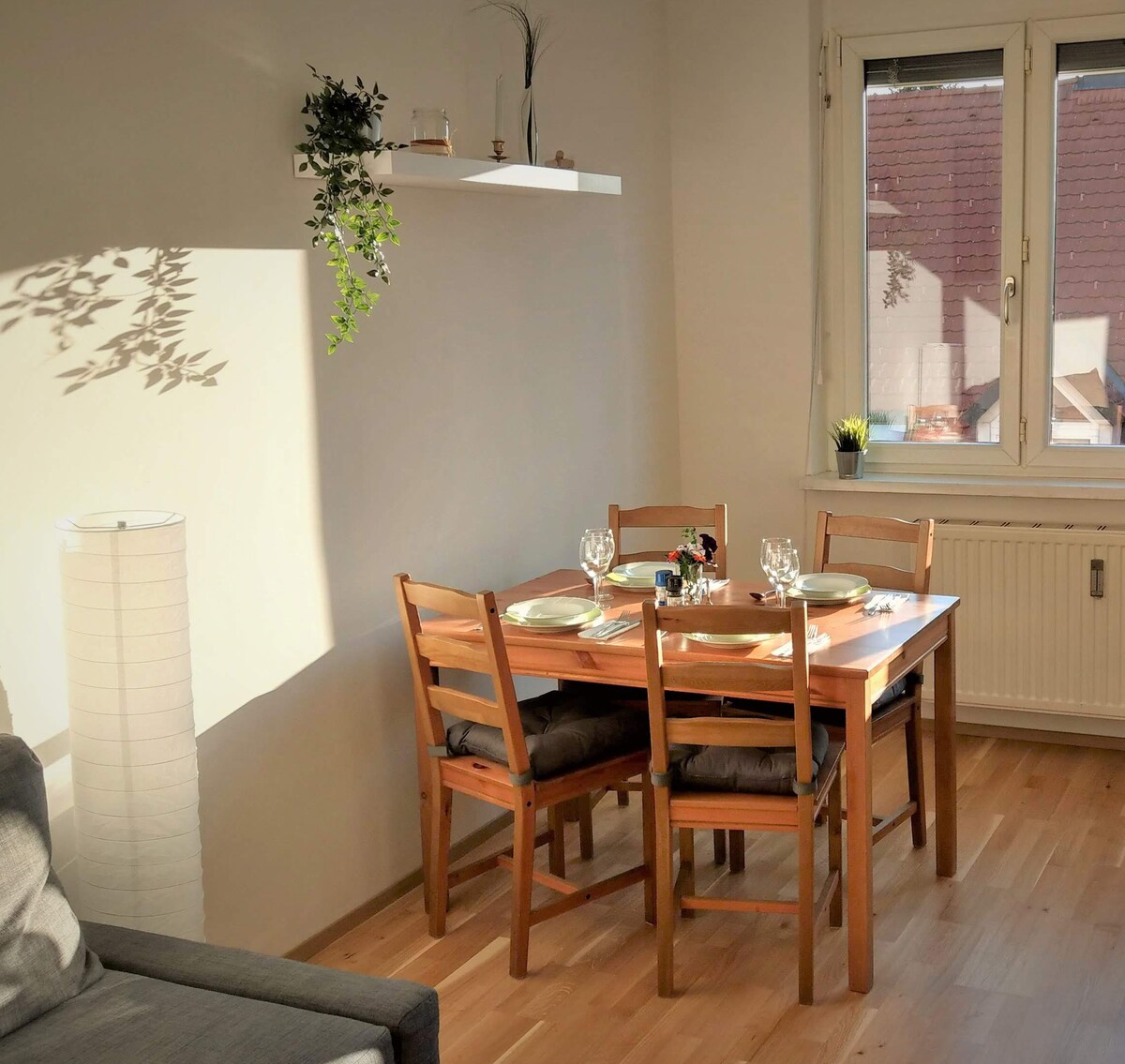 Fühl dich wie zuhause! Die ideale Unterkunft für dich - egal ob für die Arbeit, Eventbesuche oder ein Städtetrip mit deinen Liebsten. Die liebevoll eingerichtete Altbauwohnung umhüllt dich mit ihrem Charme - und das ab dem ersten Augenblick. Mit Liebe zum Detail wurde auf alles Rücksicht genommen, was du bei deinem Aufenthalt brauchst. Neben der voll ausgestatteten Küche, großem Wohnzimmer und einem modernen Arbeitsplatz (High Speed Wifi) bietet die Wohnung dir ein tolles Bad mit Waschtrockner.