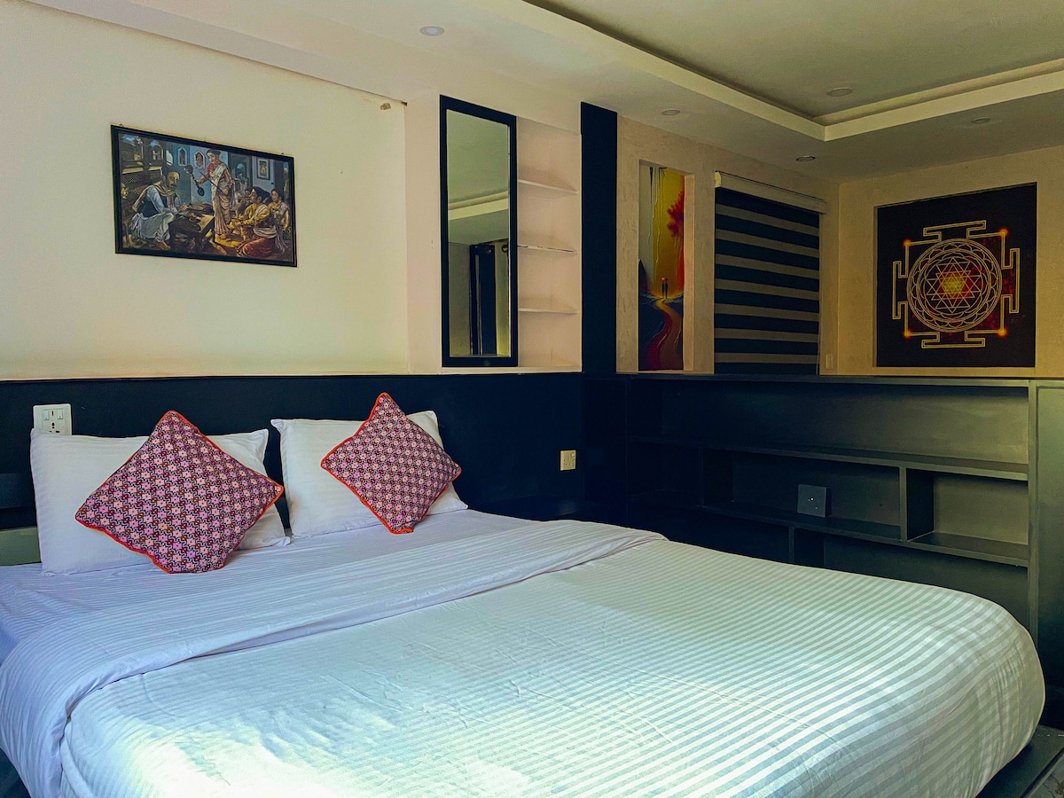Enjoy a modern stay just steps away from the lively streets of Thamel, Kathmandu. This beautifully furnished king studio suite offers both comfort and convenience in one of the city’s most accessible areas. Guests also have access to a shared terrace, ideal for enjoying fresh air, a cup of coffee, or peaceful morning views before heading out to explore Kathmandu. Contemporary and calm atmosphere perfect for couple, solo or remote working.