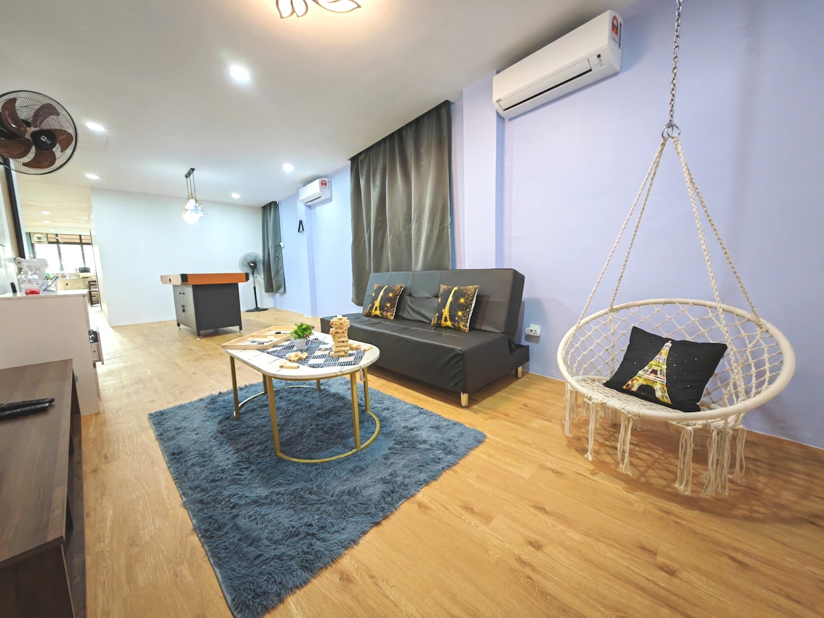 The Dan Garden -瑭苑 Un bungalow recién amueblado de más de 6000 pies cuadrados en el centro de Malaca. A 15-20 minutos de aquí a la galería Jonker. En nuestra ubicación, los huéspedes no recibirán contaminación sonora de los coches ni atascos de tráfico durante la temporada alta. Inodoro premium y TV inteligente en cada habitación. Los huéspedes pueden relajarse en nuestro jardín y paisajismo y disfrutar de la música que proviene de los altavoces del techo en la sala de estar. Te garantizamos que te encantará este lugar por el ambiente extravagante, las camas cómodas y, por supuesto, el espacio al aire libre. Habitación 1 y habitación 4 - 2 camas individuales grandes. - Cama tamaño queen x 1. - Baño (champú y toalla incluidos). - Televisión inteligente (conexión fuerte). -secador de pelo - Percha - Aire acondicionado de 2,0 hp Habitación 2 y habitación 3 - 1 cama tamaño king. - Baño (champú y toalla incluidos). - Televisión inteligente (conexión fuerte) -secador de pelo - Percha. - Aire acondicionado de 1,5 hp Sala de televisión - Televisor inteligente de 55 pulgadas (conexión fuerte) - Altavoces de calidad - Sofás cama Cocina - platos, tazas, cuchara y tenedor (para uso de 12 huéspedes) - Utensilios de cocina - Máquina de agua Coway - Barra - Nevera - Lavadora Salón - Mesa de comedor - Aire acondicionado con cassettes de 2,5 y 3,0 hp - mesa de majong Otros: Porche para coches (para 3 coches) - 2 patios con vistas al jardín 2 módems Prohibición - Prohibido fumar en interiores. - No se permiten mascotas. - No se permiten actividades fuera después de las 23:00 horas.