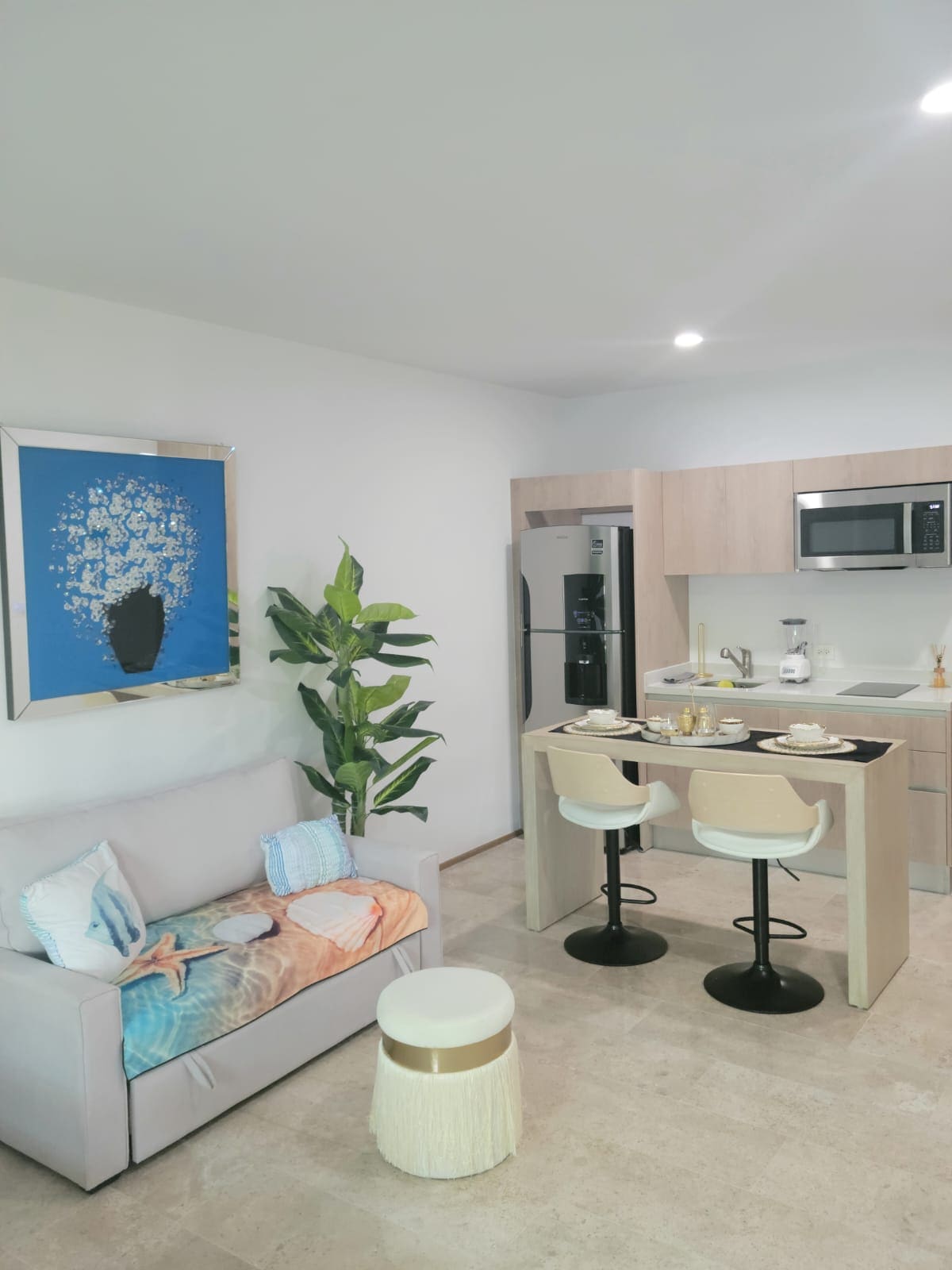 - Estudio totalmente amueblado. - A 150 metros de la 5ª Avenida. - Seguridad las 24 horas, 7 días a la - Sistema de acceso biométrico al edificio - 2 piscinas, terraza en la azotea, gimnasio y estacionamiento en el lugar. - El apartamento está equipado con una cama tamaño king, TV, Wi-Fi (15 MB), microondas, 2 estufas y un refrigerador de tamaño completo. El balcón tiene muebles de exterior para disfrutar de un café por la mañana antes de ir a la playa. Estamos disponibles casi todo el día para cualquier cosa que necesites. ¡Es una ubicación increíble, no te arrepentirás!