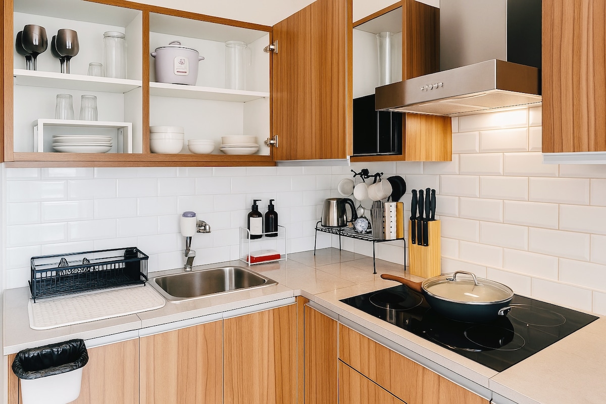 Le damos la bienvenida a nuestro luminoso y moderno departamento de un dormitorio en Makati. Ubicado en un piso alto de un edificio nuevo, el espacio está bañado por luz natural y ofrece amplias vistas a la ciudad: un refugio tranquilo por encima de la energía de la ciudad. Diseñamos el espacio pensando en la comodidad, con una amplia sala de estar y comedor de planta abierta, una cocina totalmente equipada y un dormitorio tranquilo con ropa de cama de calidad hotelera, además de un espacio de trabajo exclusivo. Fácil acceso al distrito financiero central de Makati, a los restaurantes y al transporte. Y le recibirá un anfitrión con experiencia.