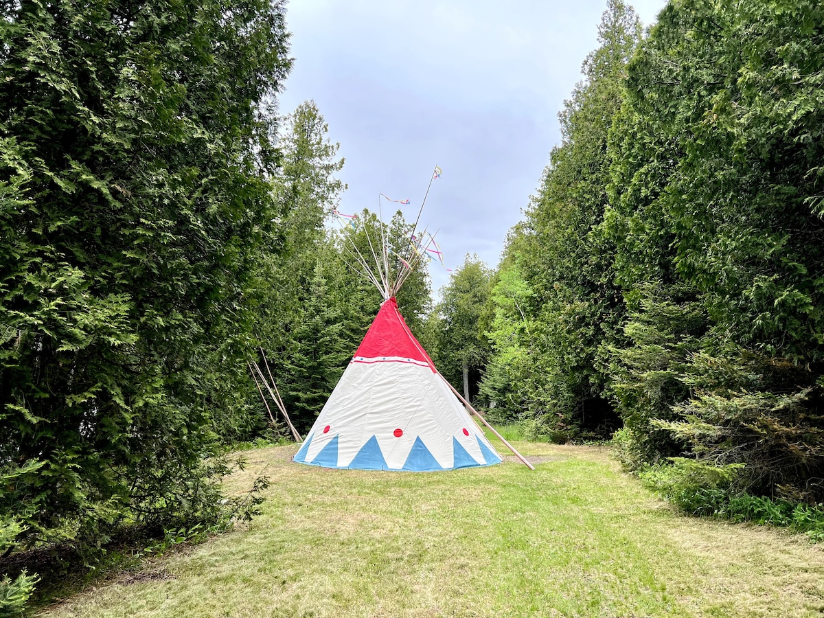 Prepárate para desconectar y relajarte. Trae tu propia ropa de cama o sacos de dormir (no incluimos ropa de cama). Te proporcionaremos la cuna cubierta, almohadas y linternas. Trae un libro que siempre hayas querido leer. El tipi no está preparado para cocinar. No se permite cocinar. Quédate dormido escuchando las olas. A cuatro millas de los barcos a la isla Mackinac. Preparado para dos adultos que duermen juntos o por separado. Si se alquila la tienda, tendrás que compartir el uso del baño con sus dos ocupantes.