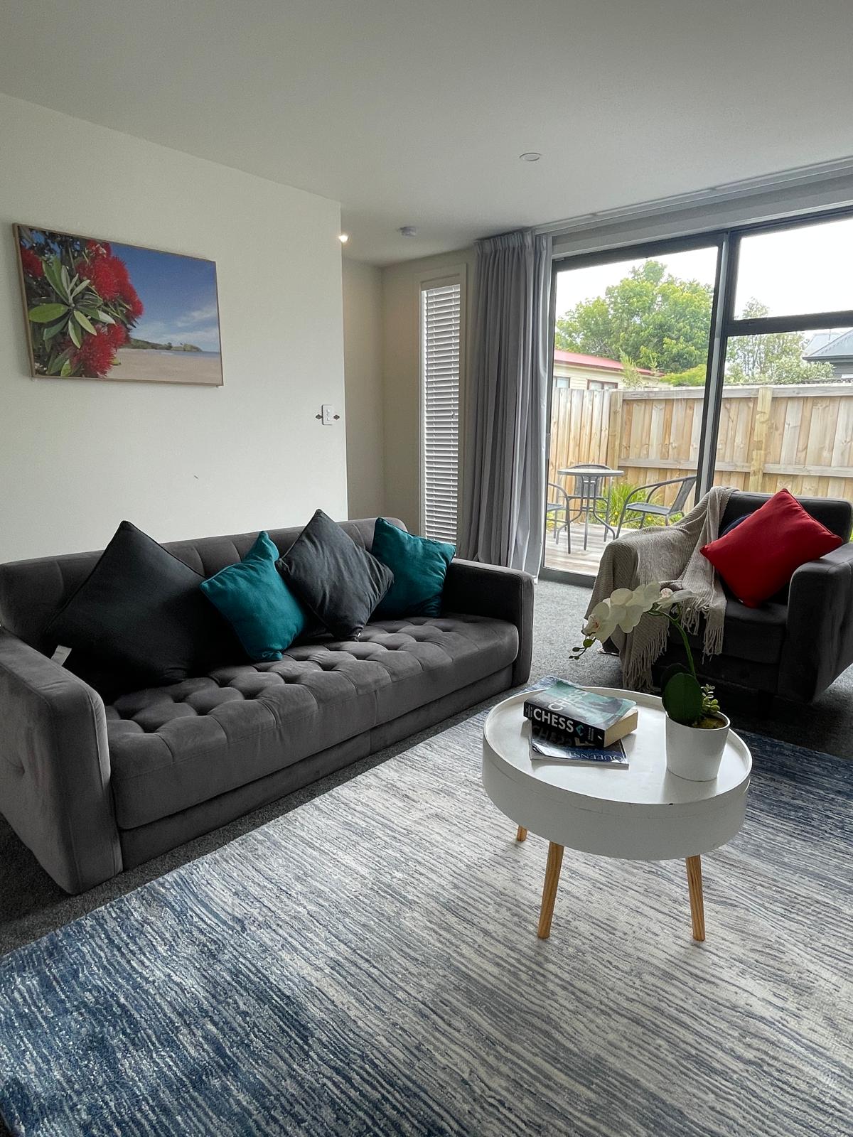 Charming 1-bedroom townhouse exuding style, featuring a foldout sofa for extra guests. North-facing with ample sunlight, enjoy a private courtyard and a fully equipped kitchen boasting all modern conveniences. Stay comfortable with a heat pump, high-speed fibre internet, a smart TV and washer/dryer combo. Perfectly located for easy strolls to all downtown attractions and eateries. A stone's throw to the Avon River, Townhall and Convention Centre and 900m to the new One NZ Te Kaha Stadium.