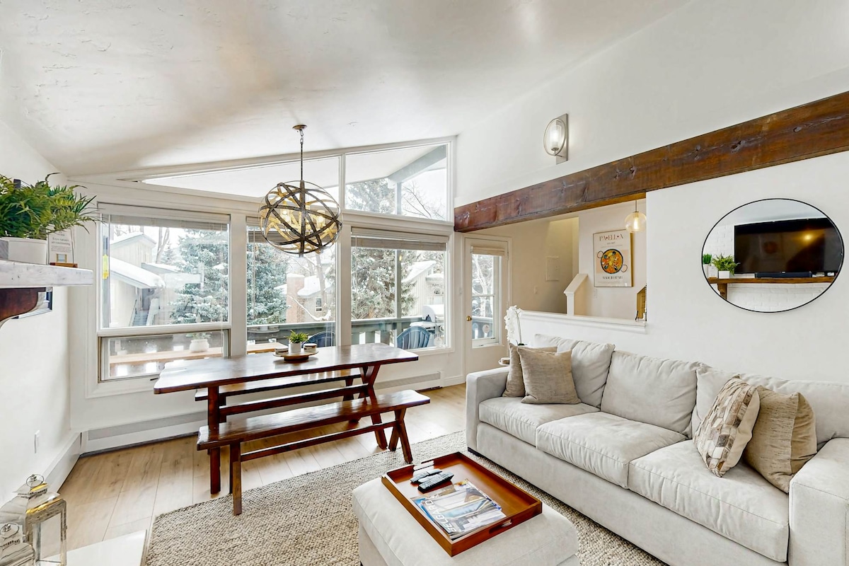 Escápate a nuestro tranquilo apartamento en Vail con aire fresco de montaña, vistas panorámicas y el relajante sonido de un arroyo fuera de tu ventana. Ideal para parejas o grupos, tanto para esquiar en invierno como para explorar vibrantes paisajes alpinos durante todo el año. A 5 minutos a pie del autobús lanzadera gratuito más cercano. A 6 minutos en coche/autobús de Vail Village y Lionshead. 1 plaza de aparcamiento gratuito en el complejo, aparcamiento adicional gratuito en la calle en Vail View Drive. ¡Se permiten hasta 2 mascotas!