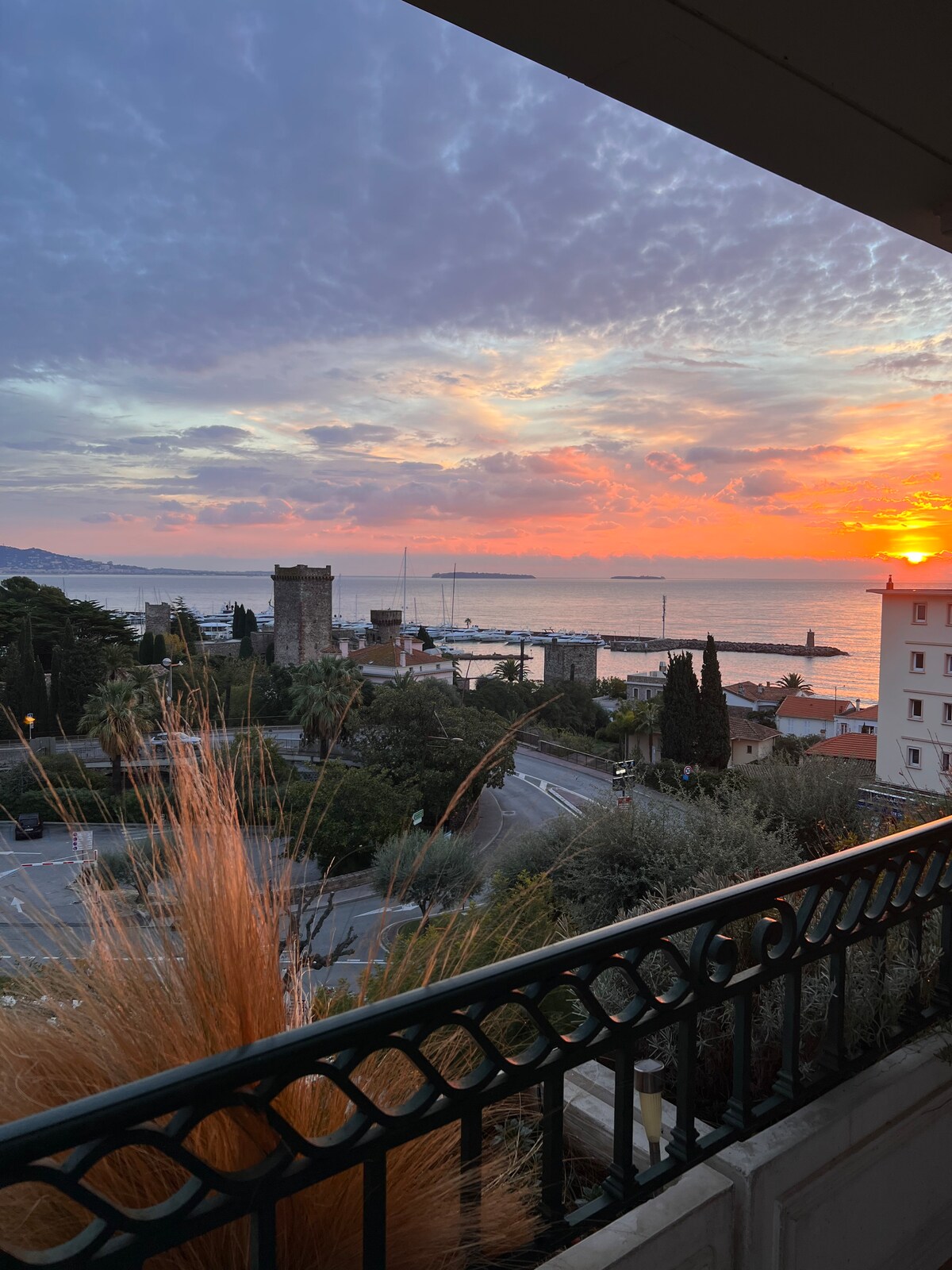Beau 2 p. (31m2) 1er et dernier étage sans ascenseur, climatisé, lumineux, face à la mer exposé sud avec une vue panoramique sur les îles de Lérins. Parking priv. au pied de la résidence. Terrasse 12m2. Une tv connectée dans la chambre et le salon avec WIFI. Cuisine équipée ouverte sur le salon. Micro onde, four, réfrig. avec compartiment congélateur, plaques vitro céramique, lave vaisselle, bouilloire, cafetière, nespresso et grille pain. S de bain avec douche, wc, m. à laver, sèche cheveux.