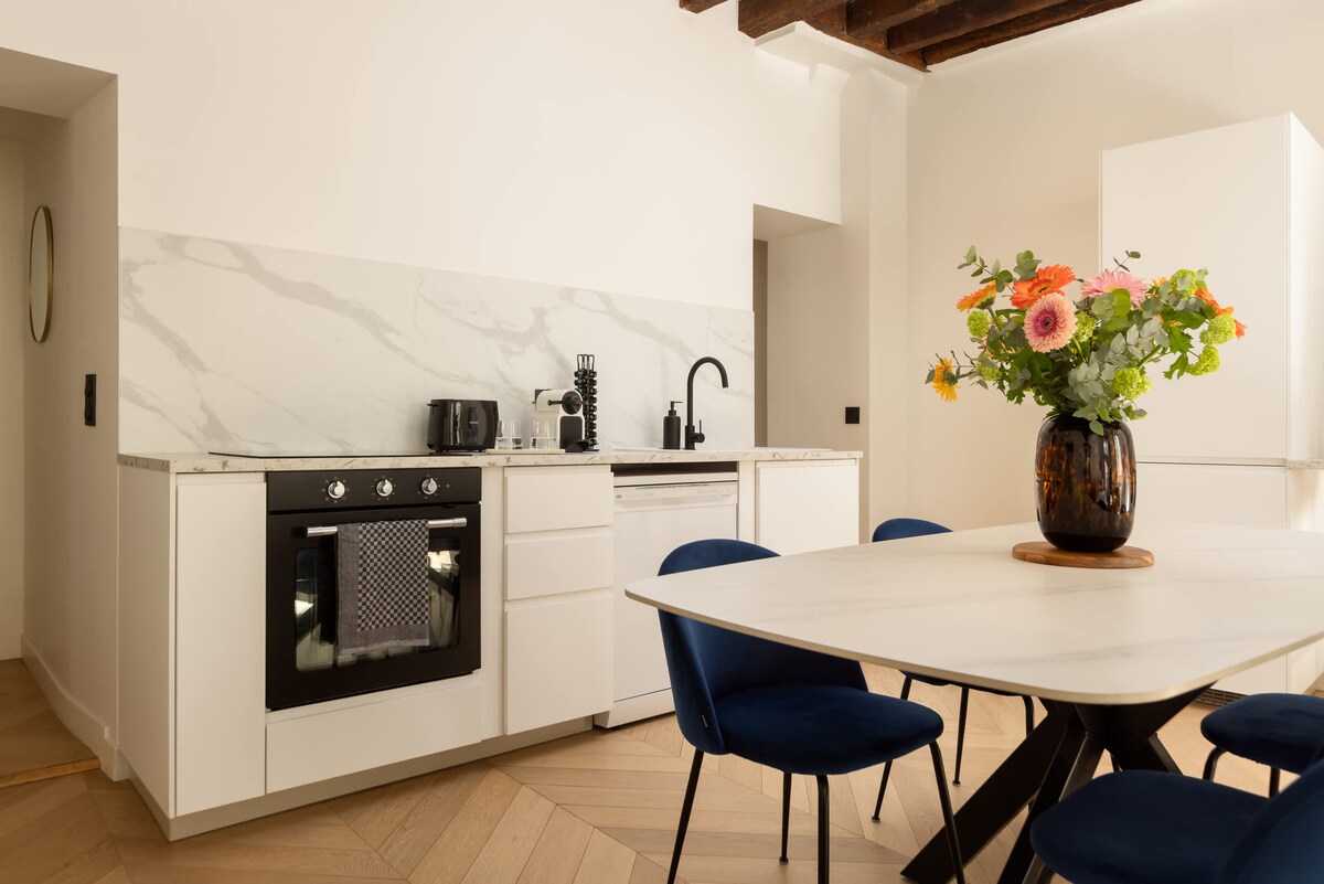 Este magnífico apartamento de cuatro estrellas está idealmente situado en el centro de París, en el corazón del 3er distrito, en el Boulevard de Sébastopol. Ya sea que esté en un viaje de negocios o visitando nuestra hermosa capital, le ofrecemos la oportunidad de vivir como un parisino durante su estancia, disfrutando de los servicios de una residencia de lujo.