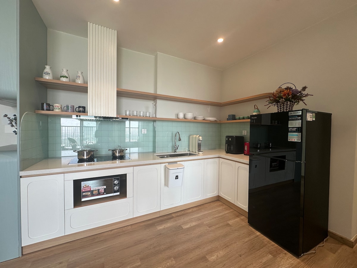 Sol Forest building was designed by the renowned international architecture firm Dewan Architects + Engineers (Dubai), famous for its Vertical Forest concept. The design creates a unique green space with elevated tropical gardens, bringing a harmonious balance between architecture and nature. The apartment is located on the 30th floor, overlooking the Vạn Tuế residential area, with open and refreshing views of the Haven and Vạn Tuế swimming pools. The homestay belongs to Cui Homestay Ecopark.