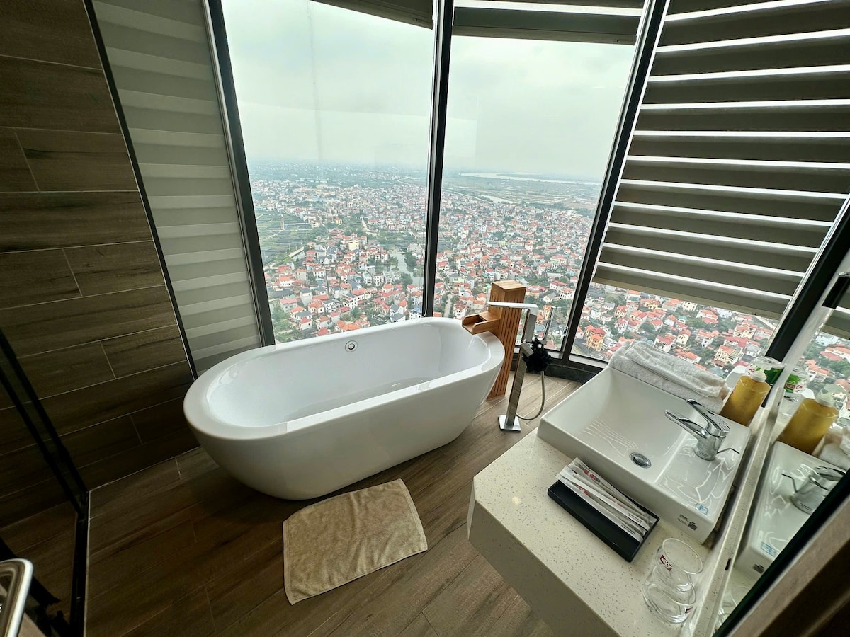 Bienvenido a Ecopark– Luxury Onsen Landmark Apt - Estilo: 3 dormitorios perfectos para parejas, familias y grupos. - Servicios completos: 2 baños grandes, cocina moderna, lavadora, secadora, aire acondicionado y wifi. - Comodidad: sauna privada, impresionante bañera con vista panorámica al lago, televisor inteligente, proyector de cine, escritorio. - Comodidad: ascensor, seguridad 24/7 - Ubicación privilegiada: ubicado en Swan Lake, golf y parque japonés, el corazón de Ecopark. Rodeado de cafés, restaurantes y tiendas... A solo unos 30 minutos del centro de la ciudad de Hanoi.
