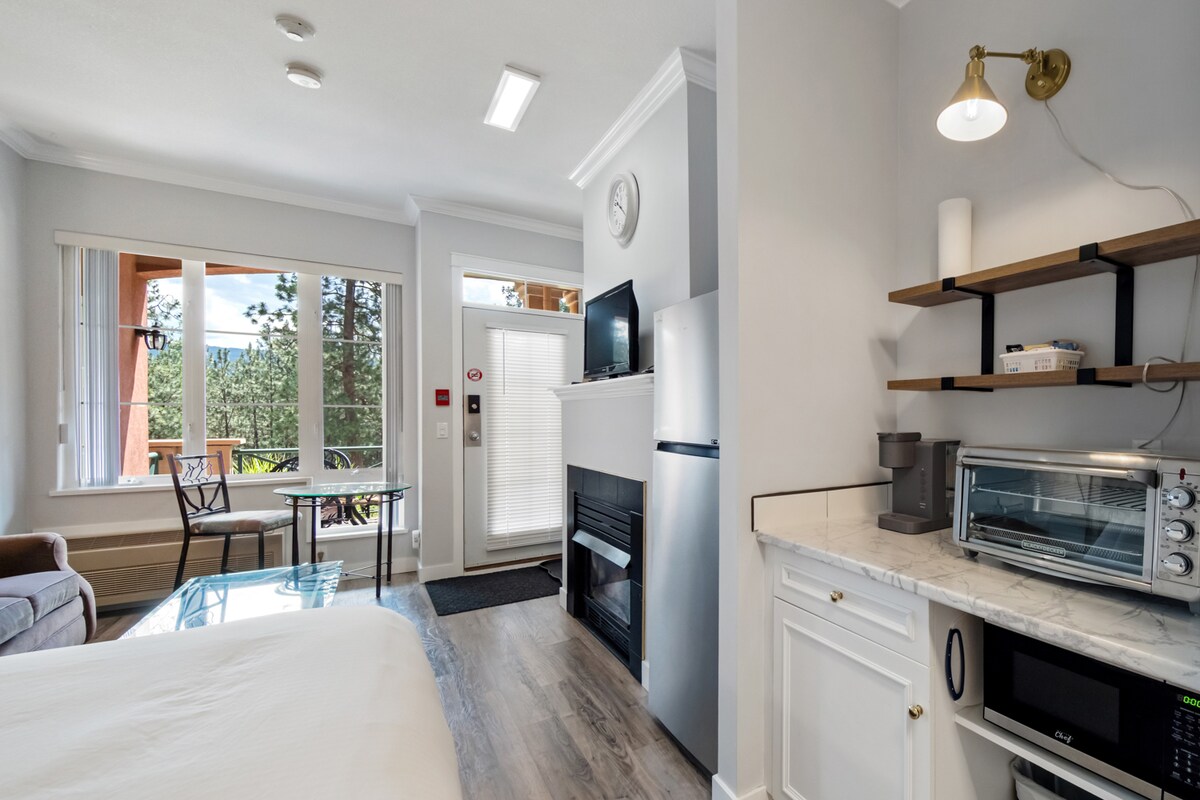 Experimenta el encanto de Kelowna en nuestro acogedor estudio ejecutivo con techos abovedados. Perfecto para parejas y viajeros de negocios, este elegante refugio cuenta con aire acondicionado, wifi de alta velocidad y balcón privado. Disfruta de la comodidad de una pequeña cocina y un gran balcón después de un día de exploración. Tu estancia aquí es una puerta de entrada a hermosos paisajes y atracciones locales, que proporciona comodidad y comodidad para una visita inolvidable. ¡Te damos la bienvenida al Borgata Lodge!