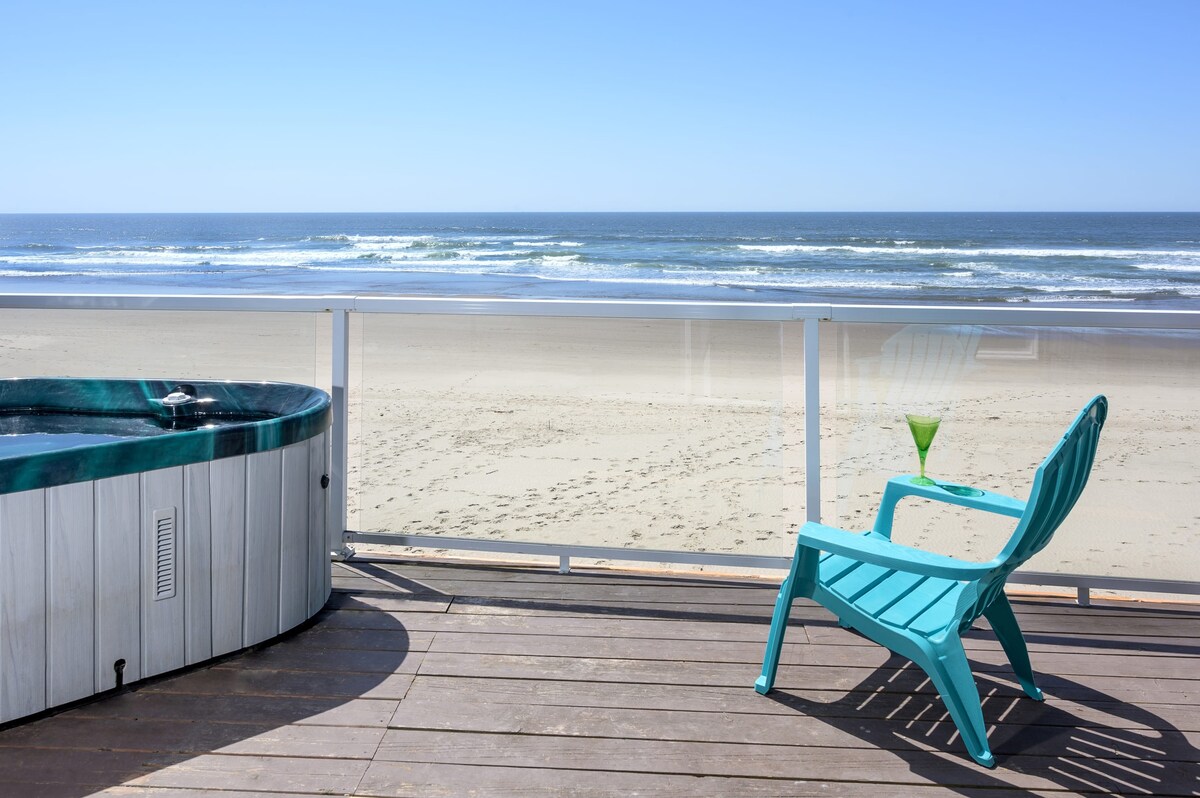 Oceanfront studio w/ hot tub & beach access