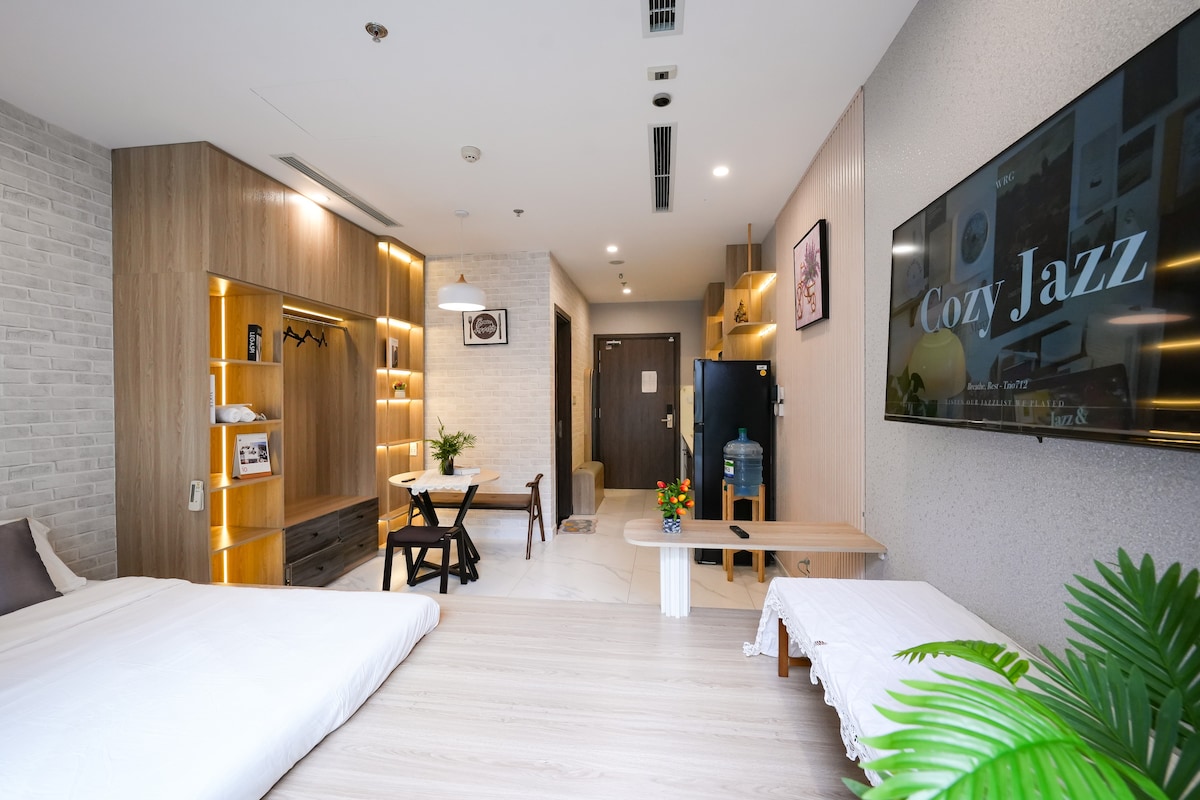 A bright, cozy studio in Thao Dien, Ho Chi Minh City’s most popular neighborhood. - Quiet and peaceful, yet right in the city center - Free Netflix Premium - Super-comfy queen-size bed with a premium mattress - Full kitchen & bathroom with all essentials - Supermarket on the ground floor - 2 minutes to bus stops - 15 minutes to Distrcit 1 by Metro - 3-10 minutes walk to city's best cafés & restaurants - 24/7 building security - Self check-in or in-person