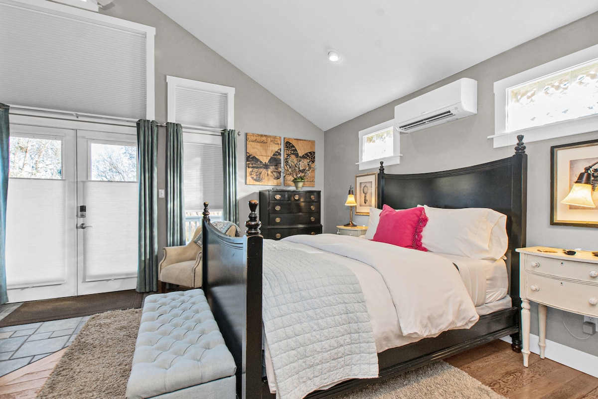 ¡CALIDAD MUCHO SUPERIOR A LOS DEMÁS! Desde un patio privado, entra en una hermosa suite con un gran vestidor, microondas, nevera y una cesta llena de aperitivos variados. Tu baño privado se encuentra en tu suite, no al final del pasillo. También cuenta con una gran ducha a ras de suelo. Tu suite tiene su propia chimenea y entrada privada. NOTA: Esta es una suite privada grande de 400 pies cuadrados, NO solo un dormitorio. ¿Buscas CALIDAD? ¿Un lugar de reflexión y autorrenovación? ¡Aquí lo tienes!