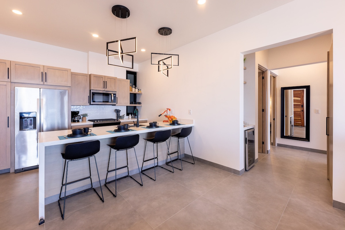 Tu escapada de ensueño frente al mar: moderno y lujoso apartamento de 2 dormitorios y 2,5 baños Ubicado en una tranquila ladera en la zona de Cerritos/Todos Santos, este nuevo apartamento frente al mar de 2024 ofrece una mezcla única de las comodidades de un hotel de alta gama y fácil acceso a las aventuras fuera de lo común de Baja California. Despiértate con impresionantes vistas al mar, saborea puestas de sol épicas desde tu patio privado y date un chapuzón en la piscina junto al acantilado. Disfruta de servicios como un gimnasio completo, una sala de vapor y una terraza para practicar yoga en la azotea. Tu aventura te espera...