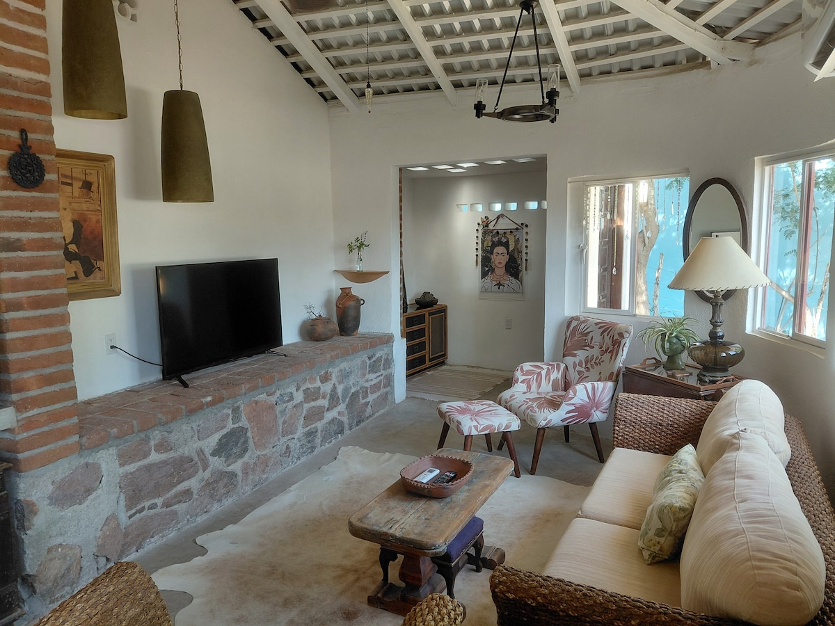 Casita del Sol está rodeada de montañas, el desierto de Baja California y vistas al océano Pacífico. Dos plantas privadas te esperan para que las disfrutes. El sonido de las olas te adormecerá cada noche. La casita es un escondite romántico, con cocina y baño completo. La mesa de comedor a la luz de las velas tiene vistas al mar. Suntuosa zona de descanso al aire libre perfecta para dormir, leer, trabajar o relajarse. Una bañera de hidromasaje de borde infinito te espera en una escalera de caracol en tu azotea privada. ¡Las puestas de sol son espectaculares!