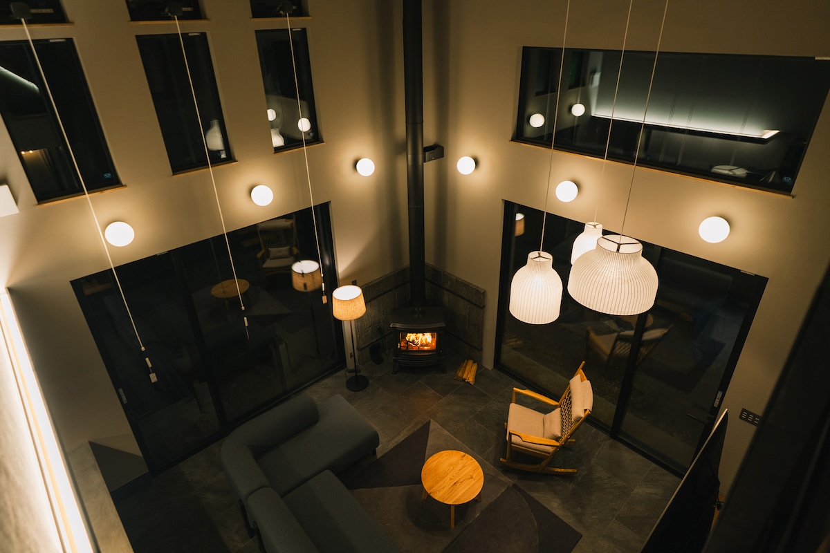 This is a new cottage built in 2022. Entering the chic house with black exterior walls, the stone hallway leading to the high ceiling living room will make you forget your everyday life. The outdoor bath is surrounded by trees, and in winter you can enjoy a relaxing snow view bath. Enjoy private theater in the living room and bedroom with a 100-inch projector screen. Displays and desks are also available for your workspace.