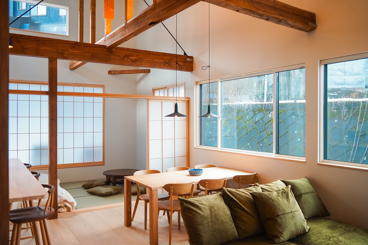 まるまる一棟貸切宿「たぬきのこづつみ 」の2Fを2023年1月7日にオープンしました。 石打丸山スキー場メインリフトより、徒歩30秒ほどの立地です!スキースノボに最適です! 元旅館をフルリノベーションし、無垢材など自然素材にかこまれた内装で、10名でも広々くつろげる空間にしました。キッチン家電、水まわりも整っています。寝室は4室とプライベートな空間はもちろん、セミダブルベッドでくつろげます。 10名以上ご宿泊検討のお客様は予約前に別途ご相談いただけましたら幸いです。 ▼交通アクセス 塩沢石打IC / 車8分 (ザ・ヴェランダ石打丸山より無料シャトルバス有) 湯沢IC / 車10分 越後湯沢駅 / 車8分 石打駅 / 車8分 ▼観光アクセス 清津峡トンネル / 車18分 ザ・ヴェランダ石打丸山 / 徒歩30秒 道の駅雪あかり / 車10分 ▼周辺環境 業務スーパー / 徒歩5分 セブンイレブン / 徒歩15分 スーパーのぐち/車10分