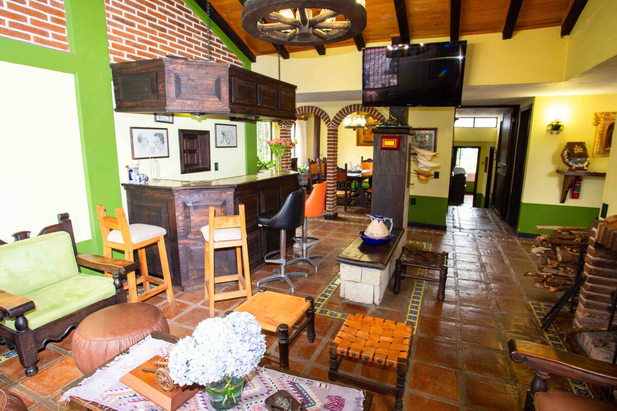 Quinta colonial para disfrutar con la familia con grandes espacios abiertos que ofrecen seguridad y limpieza durante esta pandemia. Confortable casa que conjuga lo rústico con lo moderno y la tranquilidad de la naturaleza. Decorada con artesanía mexicana y poblana. 1,500 metros de jardín, WI-Fi, 4 tv's con cable Localizada a 5 min caminando del centro de Zacatlán.
