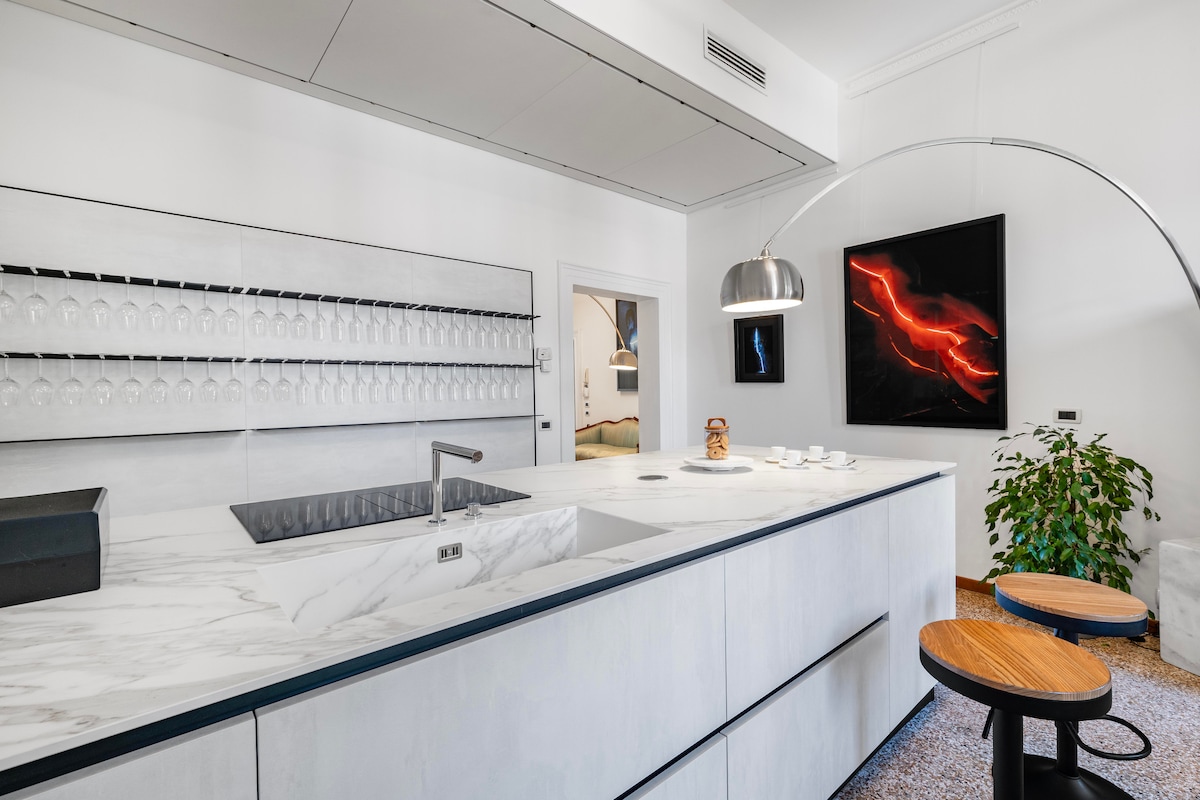 Este piso único de 300 metros cuadrados, ubicado en el cuarto y quinto piso (sin ascensor) de un palacio histórico en el corazón de Venecia, ofrece una grandiosa mezcla de tamaño, estilo y suntuosidad. El palacio, en un tranquilo callejón sin salida cerca de la Plaza de San Marcos, garantiza la máxima privacidad. Meticulosamente diseñado, cada rincón del apartamento exuda lujo y su terraza en la azotea ofrece una impresionante vista de 360 grados de Venecia para disfrutar de deliciosas experiencias gastronómicas.