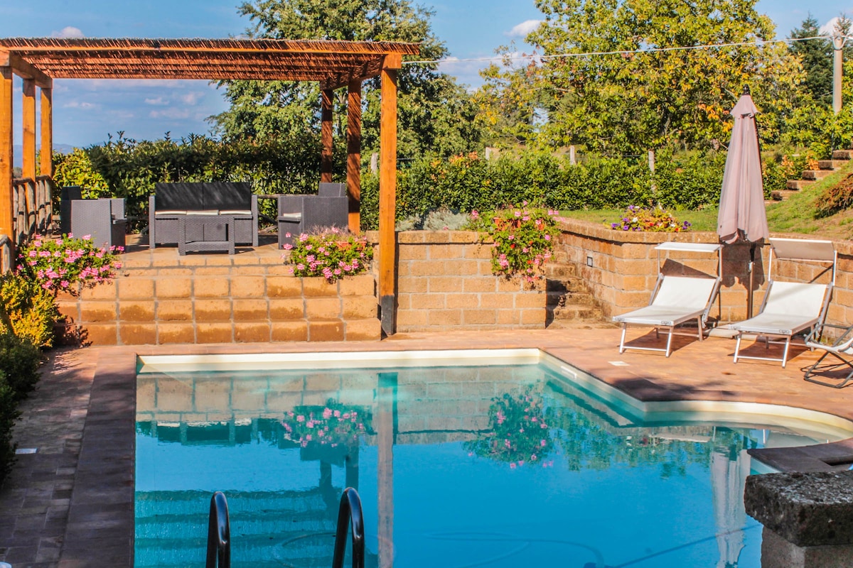 El B&B se encuentra en una zona rural de las colinas de Orvieto y a 15 km del centro de Orvieto; precisamente en la carretera estatal Umbro Casertinese - localidad Biagio - que va de Orvieto a Montefiascone. Es la típica casa de campo de toba, que data del siglo XVI, cuyas piedras se extrajeron de la colina que la rodea y la protege. Completamente renovado en 2009, dispone de tres habitaciones para uso como casa de huéspedes, decoradas con buen gusto y con baño privado.