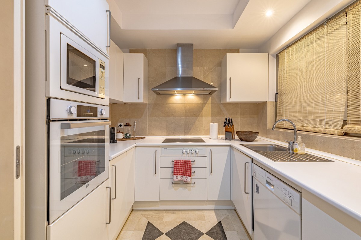 A flat with 2 bedrooms and 2 bathrooms, that includes a lot of storage space. The windows are triple glazed, so the space has a very quiet atmosphere. A spacious terrace allows for a nice hang-out spot outside with a beautiful view on to the beach and palm trees. Has a desk with Wifi. Important to note, is that this apartment also has a floor heating system, practical for the winter months. It's a 5 min walk to the beach or to the shops and restaurants of the port of Sotogrande.