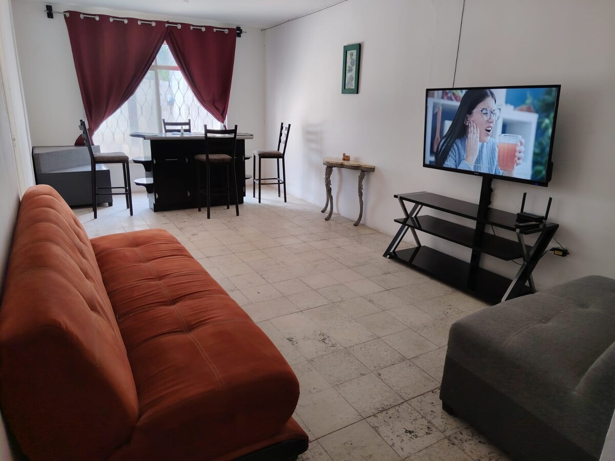 Excelente alojamiento tipo departamento acogedor con comodidades de un hogar, con privacidad de baño en tu recamara. Relájate con tus acompañantes en este alojamiento despues de ese dia de trabajo o paseos. Unidad habitacional tranquila. Ubicación de fácil acceso y cercania con restaurantes y a principales centros comerciales. servicio de facturacion!