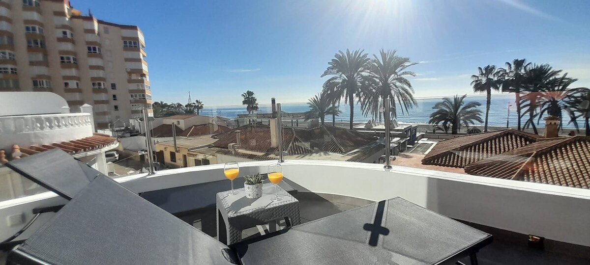 Ferien mit der Familie direkt am Strand im Strandressort Laguna Beach in Torrox-Costa. Genießen Sie Ruhe und Komfort im zweistöckigen neu renovierten Apartment für 4 Personen. Sie wohnen in einem stilvollen voll klimatisiert Apartment mit einer sehr großen Dachterrasse und auch noch einem Balkon im 1. Stock. WLAN, Sat-TV... Dieses schöne Apartment befindet in der 1 und 2 Etage, in einer autofreien Anlage direkt am Strand mit verschiedenen Restaurants, Pools, Tennis-plätzen, Padel uvm.