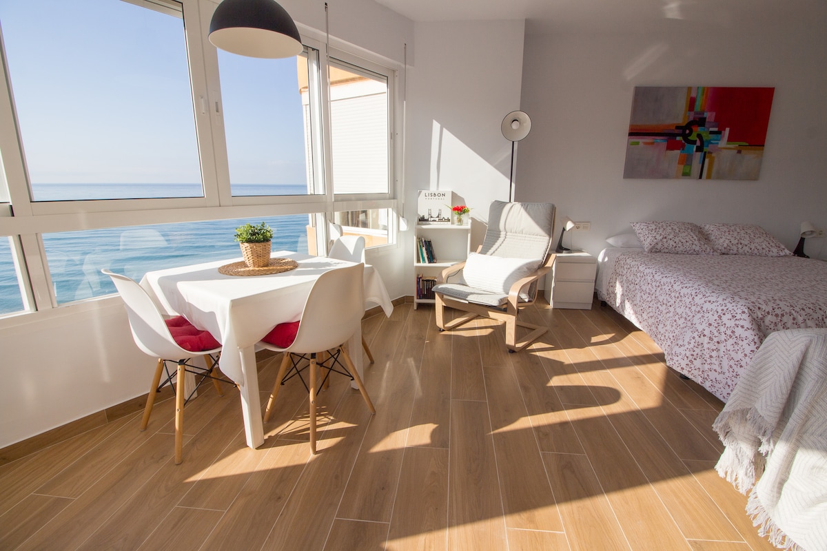 Apartamento en primera línea de playa en el centro de Torrox Costa. Próximo a restaurantes, supermercados, farmacias, parada de bus y taxi. Alojamiento ideal para personas que viajan solas, en pareja o con un bebé. Reformado, dispone de un luminoso salón comedor que conecta con la terraza, dormitorio con cama de matrimonio, baño con ducha y cocina integrada en el salón, WIFI, A/C, piscina comunitaria y pistas de tenis. Cochera cerrada bajo petición y según disponibilidad.